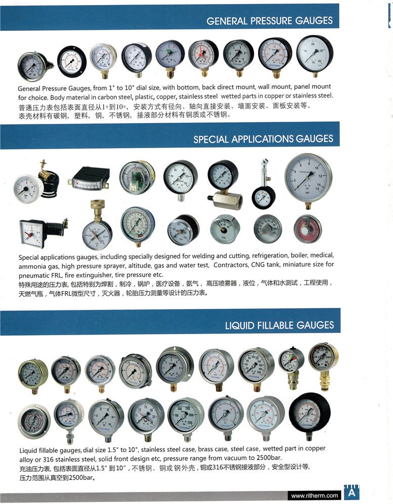 我們公司按照歐標(biāo)EN 837,EN 19190,美標(biāo)ANSI B40.1和國標(biāo)GB/T 1226,企標(biāo)Q/NXR 001-2013生產(chǎn)合格產(chǎn)品,目前擁有計(jì)量標(biāo)準(zhǔn)考核證書、制造計(jì)量器具許可證、ISO9001質(zhì)量管..