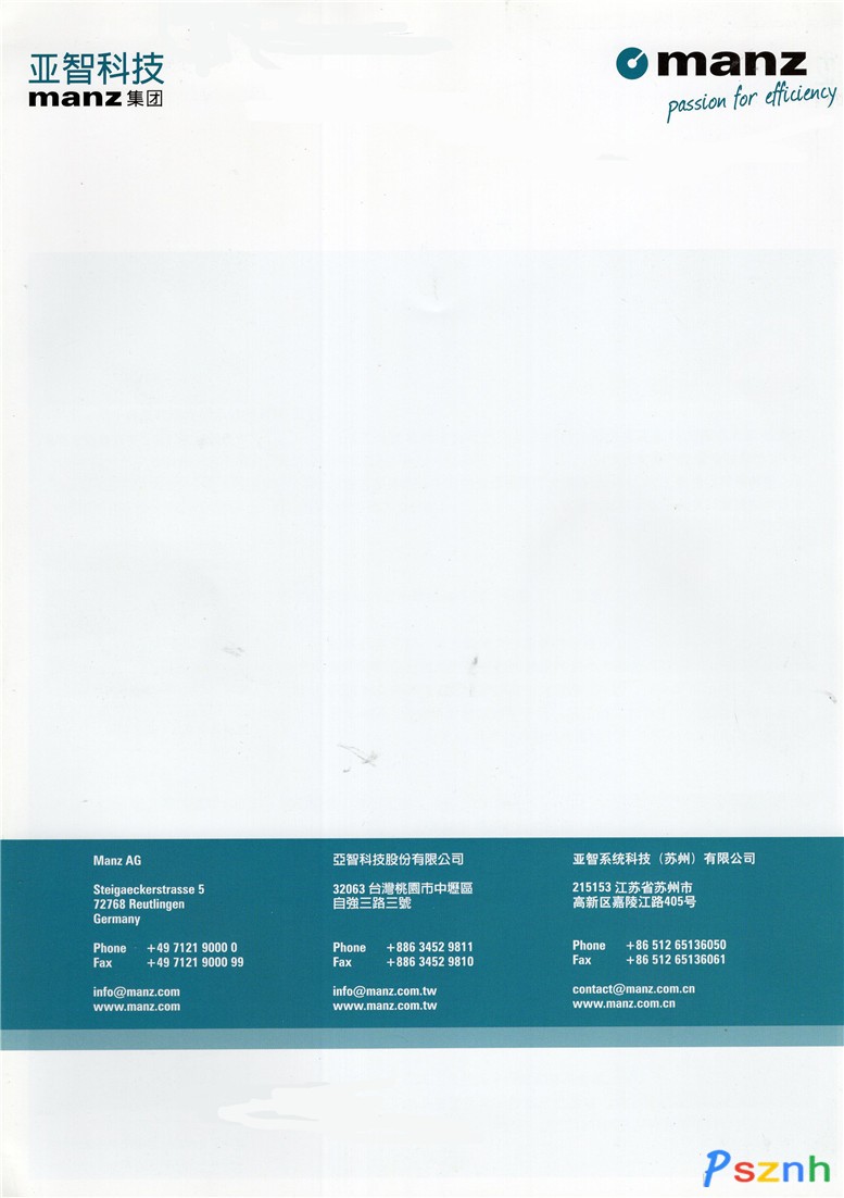Manz 始于德國巴登符騰堡州,這一地區(qū)是德國先進(jìn)工程的搖籃之一,也是當(dāng)今世界領(lǐng)先的高科技重地之一。Manz 員工來自30個國家,并在世界各 地的所有重要增長地區(qū)表現(xiàn)活躍。隨著在中國蘇州新工廠的成立(在2012年年初完工啟用),Manz 能夠更加有效地滿足當(dāng)前市場的發(fā)展趨勢。