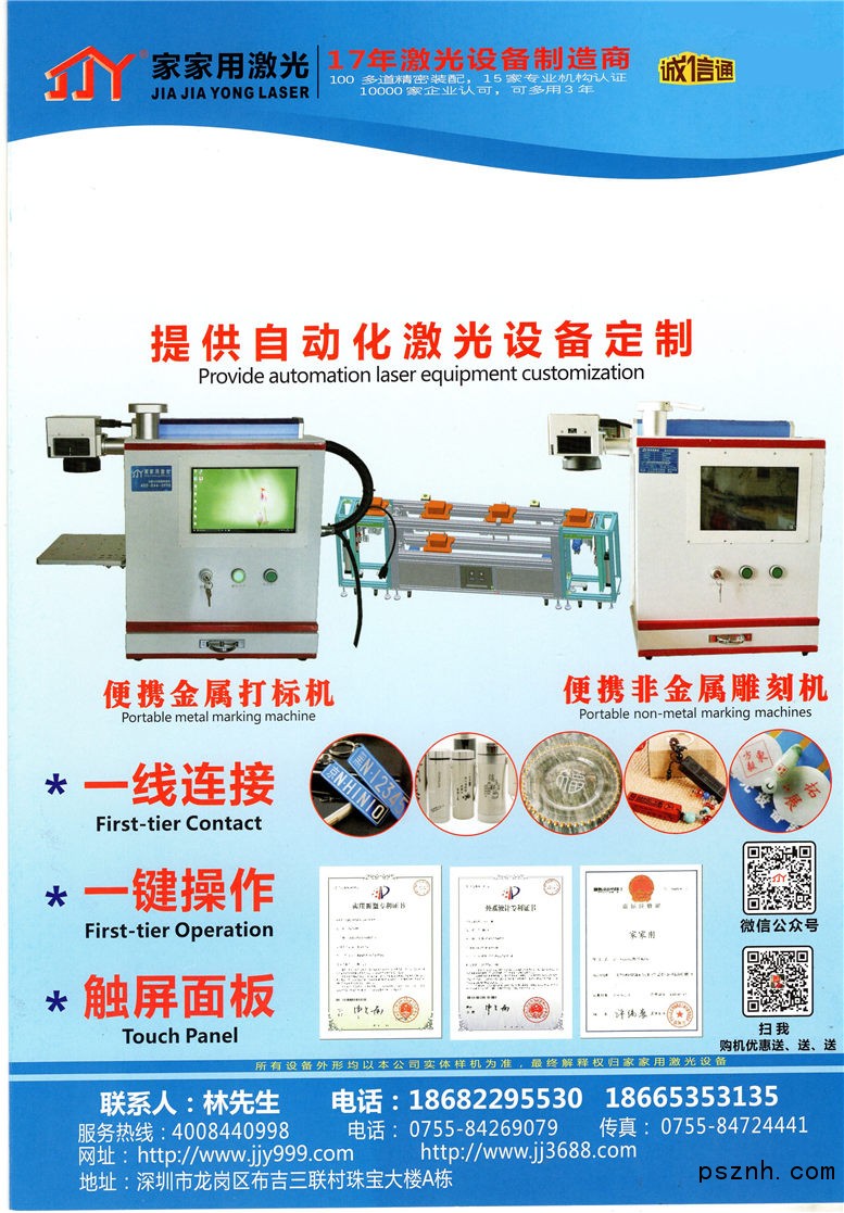新型光纖激光打標(biāo)機(jī)_端面泵半導(dǎo)體激光打標(biāo)機(jī)_二氧化碳激光打標(biāo)機(jī)_紫外激光打標(biāo)機(jī) _激光微孔機(jī)_激光打碼專用機(jī)-深圳市家家用激光設(shè)備有限公司點(diǎn)擊:3544 評(píng)論:0 查看原圖 |