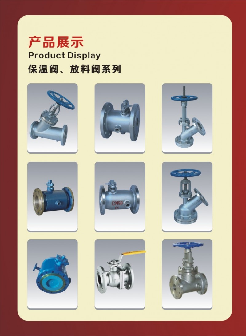 公司主導(dǎo)產(chǎn)品為夾套保溫閥系列閥門,歷經(jīng)多年的努力和不斷創(chuàng)新,公司設(shè)備精良,技術(shù)力量雄厚,檢測設(shè)施齊全。產(chǎn)品通徑15-300mm,材料有碳鋼、304、316、304L、316L、321、鉻鉬鋼、CF8、CF3、CF3M、CF8M等。