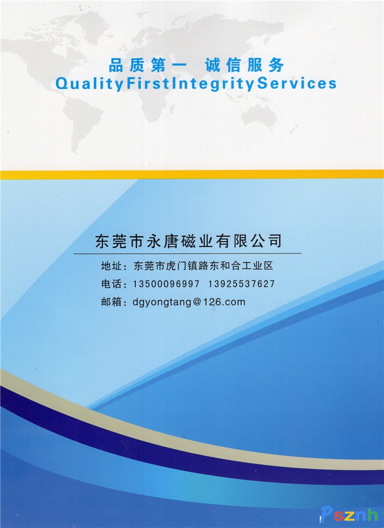 本公司致力于稀土磁石表面處理領(lǐng)域的開(kāi)發(fā),主要表面處理工藝采用德國(guó)、日本高薪技術(shù),產(chǎn)品品質(zhì)性能達(dá)到國(guó)際標(biāo)準(zhǔn)。公司憑借雄厚的表面處理技術(shù),力量和人才優(yōu)勢(shì),業(yè)務(wù)范圍遍及內(nèi)蒙古、北京、江蘇、安徽、福建、廣東及港澳臺(tái)等地。磁鐵產(chǎn)品涉及家用電器、儀表儀器、電視電表、自動(dòng)控制、醫(yī)療設(shè)備、汽車(chē)工業(yè)、手機(jī)電子工業(yè)、風(fēng)能發(fā)電、航天航空等高科技領(lǐng)域。我公司的誠(chéng)信、實(shí)力和產(chǎn)品質(zhì)量獲得業(yè)界的認(rèn)可,歡迎各界朋友,蒞臨參觀,指導(dǎo)和業(yè)務(wù)洽談。