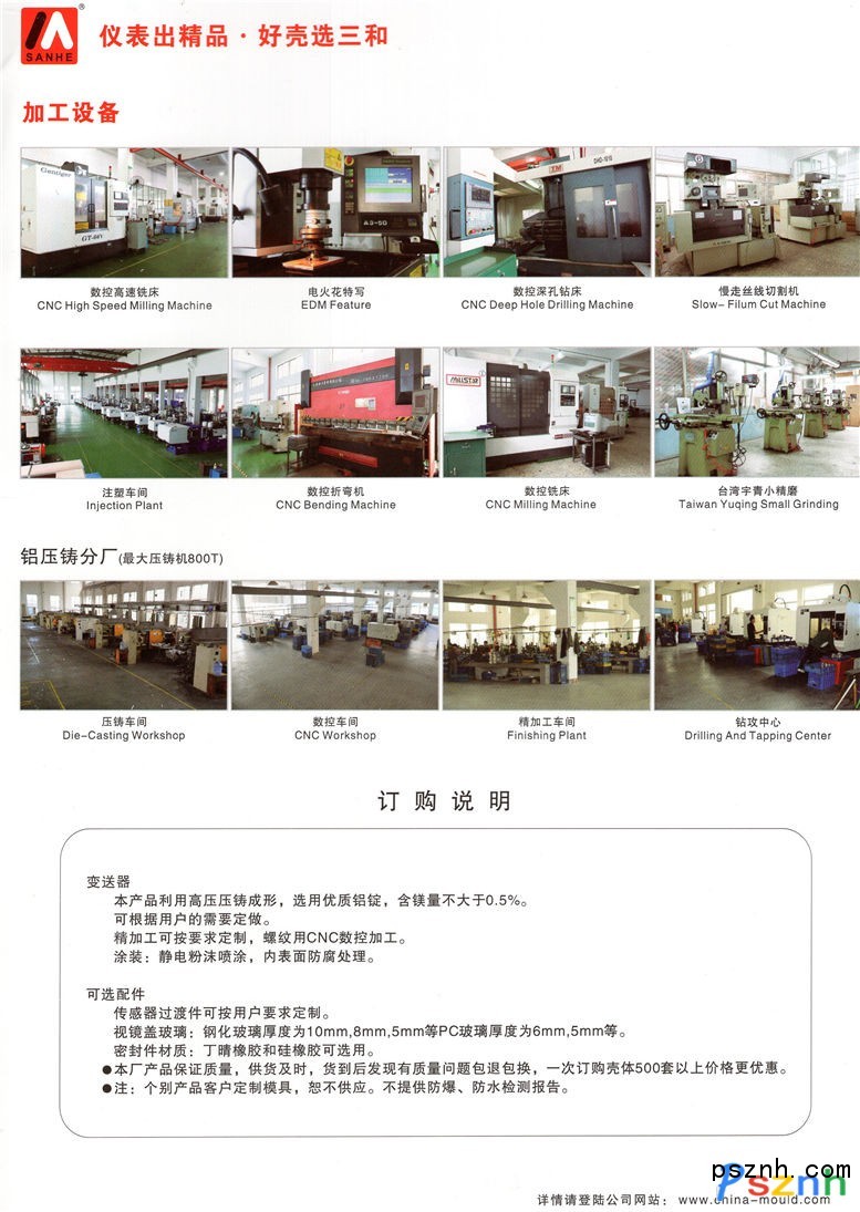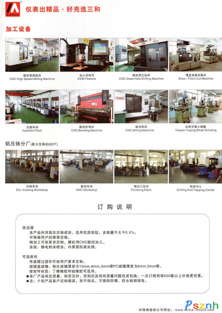 2010年公司又在寧波余姚投巨資7000多萬(wàn),新建寧波三和殼體模具有限公司,新購(gòu)一批與歐美同步的模具制造及產(chǎn)品加工設(shè)備,其中注塑機(jī)80多臺(tái),另投入200萬(wàn)購(gòu)置一臺(tái)德國(guó)進(jìn)口點(diǎn)膠機(jī),用于防水密封箱加工,可使防水等級(jí)達(dá)到IP67以上。