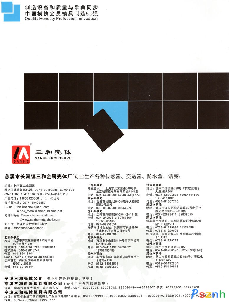 作為中國(guó)模具協(xié)會(huì)會(huì)員,寧波模具制造業(yè)50強(qiáng),公司產(chǎn)品銷(xiāo)售遍布世界各國(guó)。公司現(xiàn)有固定資產(chǎn)2億元人民幣,土地150畝,在寧波有三塊主要廠區(qū),廠房超過(guò)10萬(wàn)平方米(另在上海有廠房2萬(wàn)平方米),員工逾1200多人,年銷(xiāo)售額約人民幣2億多元人民幣。在北京、上海等各一線及省會(huì)城市均設(shè)立分公司和辦事處。歡迎國(guó)內(nèi)外客商共同合作開(kāi)發(fā)新產(chǎn)品,通用產(chǎn)品模具費(fèi)只收50%甚至更低。