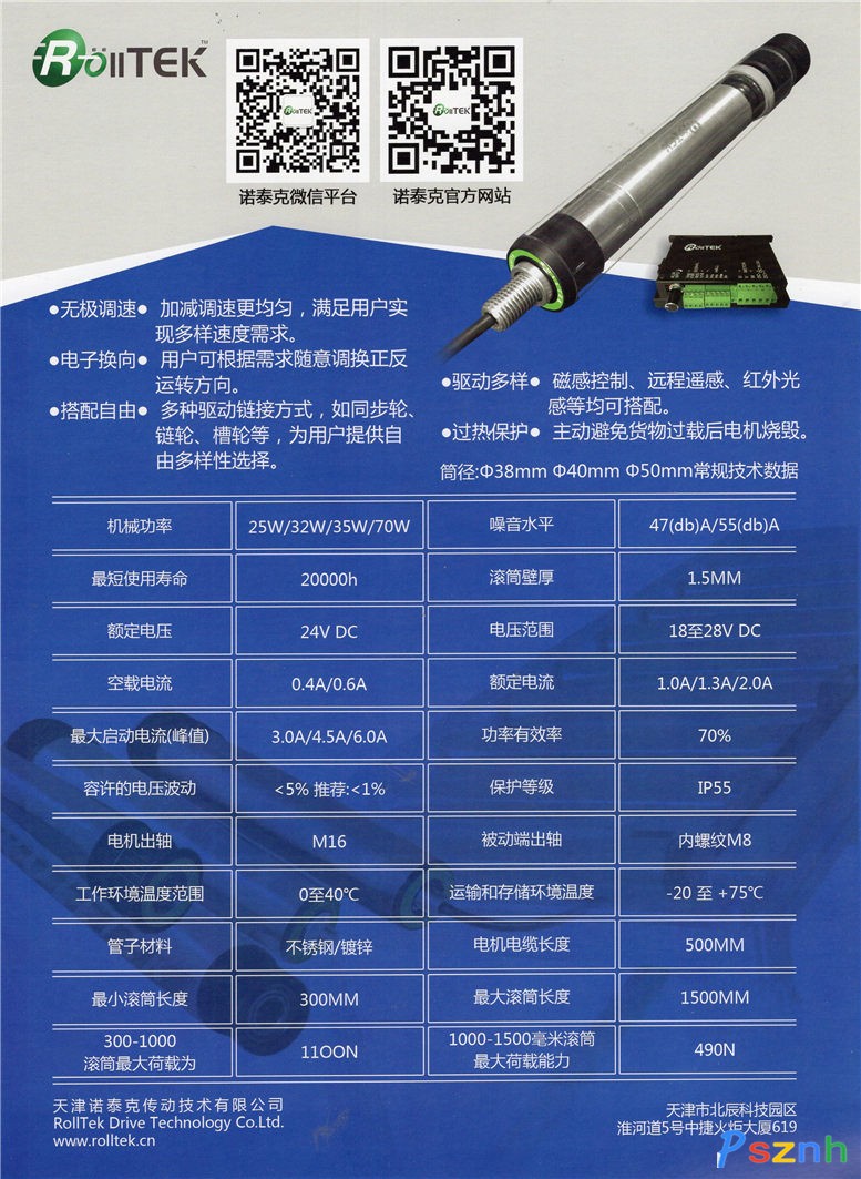 天津諾泰克傳動(dòng)技術(shù)有限公司 皮帶式輸送設(shè)備專用微型電動(dòng)滾筒 Rolltek電動(dòng)滾筒