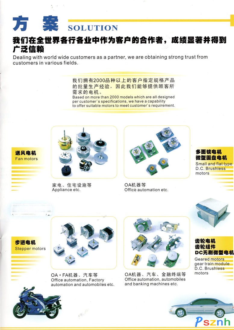 東莞信濃馬達有限公司成立于1994年3月,是日本信濃株式會社精密電機事業(yè)部下屬的分支機構(gòu)。公司現(xiàn)投資總額共計3億港元,注冊資本為13485萬港元,年產(chǎn)值達20億港元,公司占地6萬平方米,現(xiàn)有員工4000多人。公司投產(chǎn)十多年來,一直生產(chǎn)世界一流品質(zhì)和高規(guī)格文化含量的電機產(chǎn)品,產(chǎn)品應(yīng)用在辦公設(shè)備、醫(yī)療設(shè)備、家電、住宅設(shè)施、汽車等各個領(lǐng)域,共計三大類、70多個品種、1000多個型號,被廣東省政府確認為高新技術(shù)企業(yè)。公司通過了ISO9001、TS16949、ISO14001的認證,已成為東莞乃至廣東的知名企業(yè)。公司有開發(fā)設(shè)計人員50余人,并在深圳成立了研發(fā)中心從事運動控制技術(shù)、光機電一體化、馬達、自動化裝置等相關(guān)技術(shù)的研究開發(fā)。