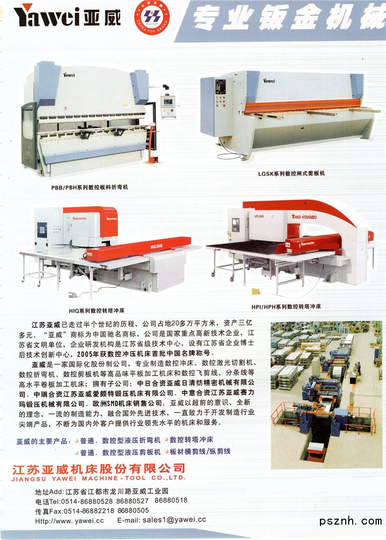 江蘇亞威機(jī)床股份有限公司,地處風(fēng)景秀麗的歷史名城揚(yáng)州東郊江都市,專業(yè)制造數(shù)控轉(zhuǎn)塔沖床、數(shù)控激光切割機(jī)、數(shù)控折彎?rùn)C(jī)、數(shù)控剪板機(jī)、折彎?rùn)C(jī)、剪板機(jī)等高品質(zhì)平板加工機(jī)床和數(shù)控飛剪線、分條線等高水平卷板加工機(jī)械,產(chǎn)品定位于中高端,數(shù)控化率達(dá)90%以上,是國(guó)內(nèi)少數(shù)幾家能夠提供完整的中高端平板、卷板加工一攬子解決方案的專業(yè)金屬板材成形機(jī)床企業(yè)之一,經(jīng)過(guò)五十多年的發(fā)展壯大,已成為國(guó)內(nèi)中高端金屬板材成形機(jī)床行業(yè)的領(lǐng)先企業(yè)。
