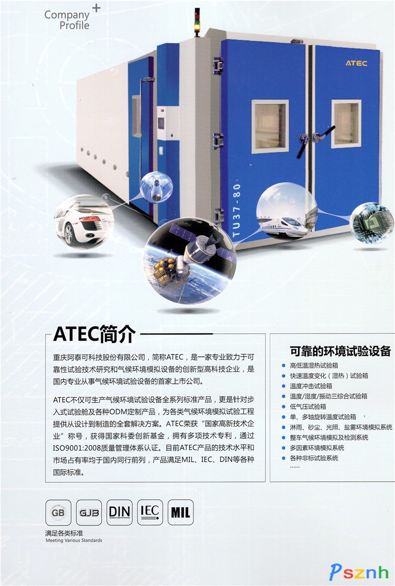 主要產(chǎn)品:溫度、濕度、低氣壓、熱真空、鹽霧、陽(yáng)光、沙塵、防爆、淋雨、綜合試驗(yàn)箱、旋轉(zhuǎn)試驗(yàn)箱。各種非標(biāo)準(zhǔn)試驗(yàn)系統(tǒng)、汽車尾氣排放檢測(cè)系統(tǒng)、老化與監(jiān)測(cè)試驗(yàn)系統(tǒng)、衛(wèi)星環(huán)境模擬系統(tǒng)等。ATEC產(chǎn)品已廣泛應(yīng)用于各種高端國(guó)家重點(diǎn)實(shí)驗(yàn)室和各領(lǐng)域?qū)嶒?yàn)室,涉及航空、航天、兵器、船舶、電子、郵電、鐵道、電力、汽車、計(jì)量、醫(yī)院等諸多領(lǐng)域。