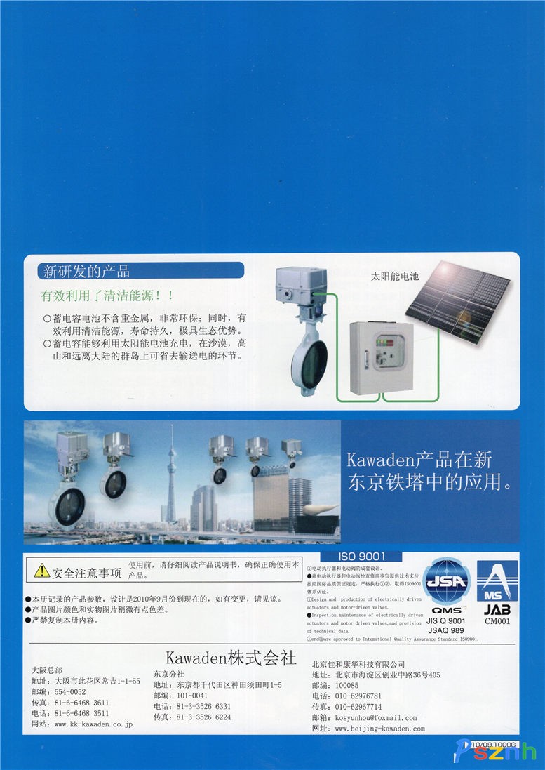 北京佳和康華科技有限公司位于北京市昌平區(qū)新元科技園,是日本KAWADEN株式會(huì)社在華子公司,總部位于日本大阪,專業(yè)從事KAWADEN系列電動(dòng)執(zhí)行器,工業(yè)控制閥,全自動(dòng)緊急切斷閥等產(chǎn)品設(shè)計(jì),研發(fā),生產(chǎn),銷售。公司憑借多年的研發(fā)生產(chǎn)經(jīng)驗(yàn)以及最全面,最高品質(zhì)的流體自控產(chǎn)品和專業(yè)的技術(shù)成套服務(wù),長期以來與世界500強(qiáng)乃至100強(qiáng)企業(yè)(日立,三菱重工等)形成了非常良好的供應(yīng)關(guān)系。我公司已取得多項(xiàng)產(chǎn)品新型專利技術(shù)和發(fā)明專利,目前產(chǎn)品已通過防爆認(rèn)證,CE認(rèn)證等,本公司擁有自主進(jìn)出口權(quán)。