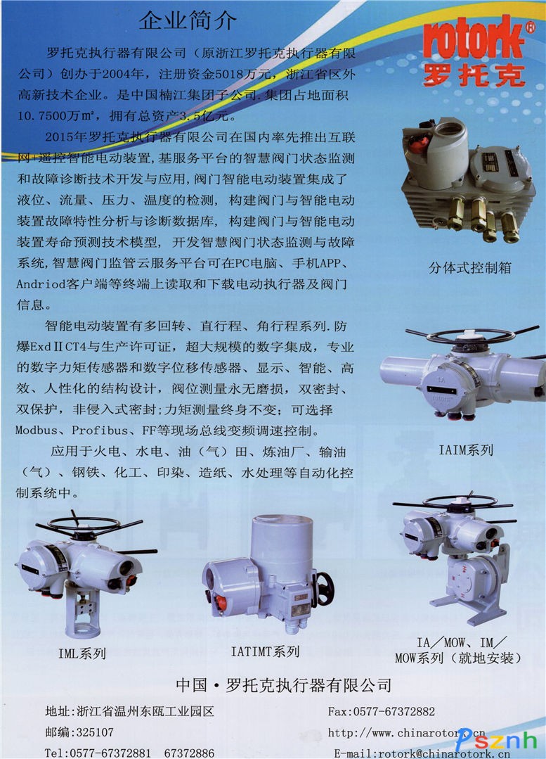 本公司生產的多回轉、直行程、角行程電動裝置與各種閥門配套,組成執(zhí)行單元。廣泛地應用于電站(水電、火電、核電)、油(氣)田、煉油廠、輸油(氣)管道、鋼鐵、化工、化肥、制藥、印染、制糖、污水處理、供水工程等汽液輸送管道的自動控制系統(tǒng)中,既能滿足頻繁調節(jié)控制,又能滿足斷續(xù)控制的要求。并能實現(xiàn)現(xiàn)場總線智能測控。
