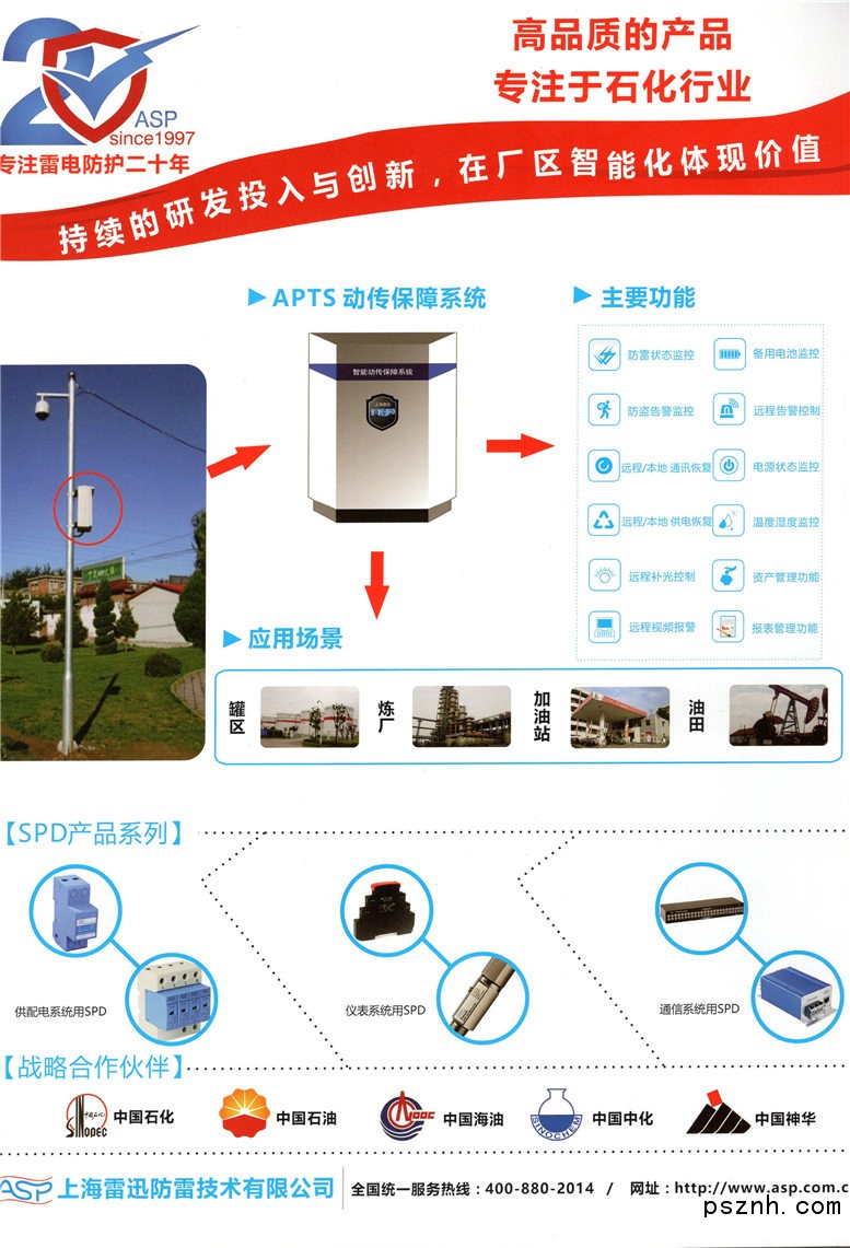 ASP作為“全國用戶滿意十佳品牌”,擁有電源SPD、控制線路SPD、網(wǎng)絡(luò)線路SPD、視頻監(jiān)控SPD、通訊線路SPD及天饋線路SPD等完整系列產(chǎn)品——其中,近60個產(chǎn)品獲得國家級測試中心檢測報告,多個系列產(chǎn)品獲得歐洲CE認證,并通過了ISO9001:2008質(zhì)量管理體系認證。