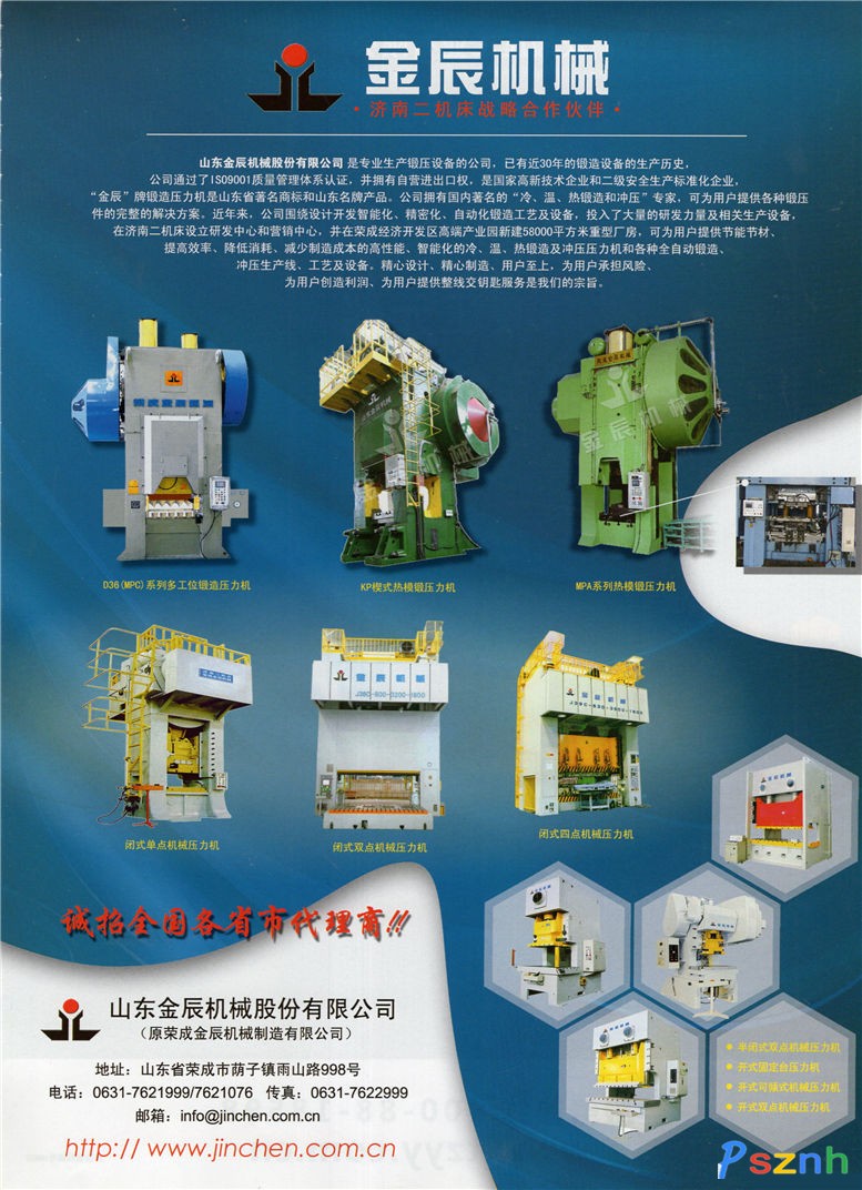 山東金辰機械股份有限公司是專業(yè)生產(chǎn)鍛壓設(shè)備的公司,已有近30年的鍛造設(shè)備的生產(chǎn)歷史,公司通過了ISO9000質(zhì)量管理體系認(rèn)證,并擁有自營進出口權(quán)、是山東省高新技術(shù)企業(yè)和國家二級安全生產(chǎn)標(biāo)準(zhǔn)化企業(yè)。公司目前擁有專利19項,其中發(fā)明專利4項,實用新型15項。受中國標(biāo)準(zhǔn)化委員會委托負(fù)責(zé)《精密鍛造壓力機》、《精密棒料剪斷機》兩項國家行業(yè)標(biāo)準(zhǔn)的起草工作,公司設(shè)有威海市企業(yè)技術(shù)開發(fā)中心,威海市鍛壓裝備及工藝工程實驗室。