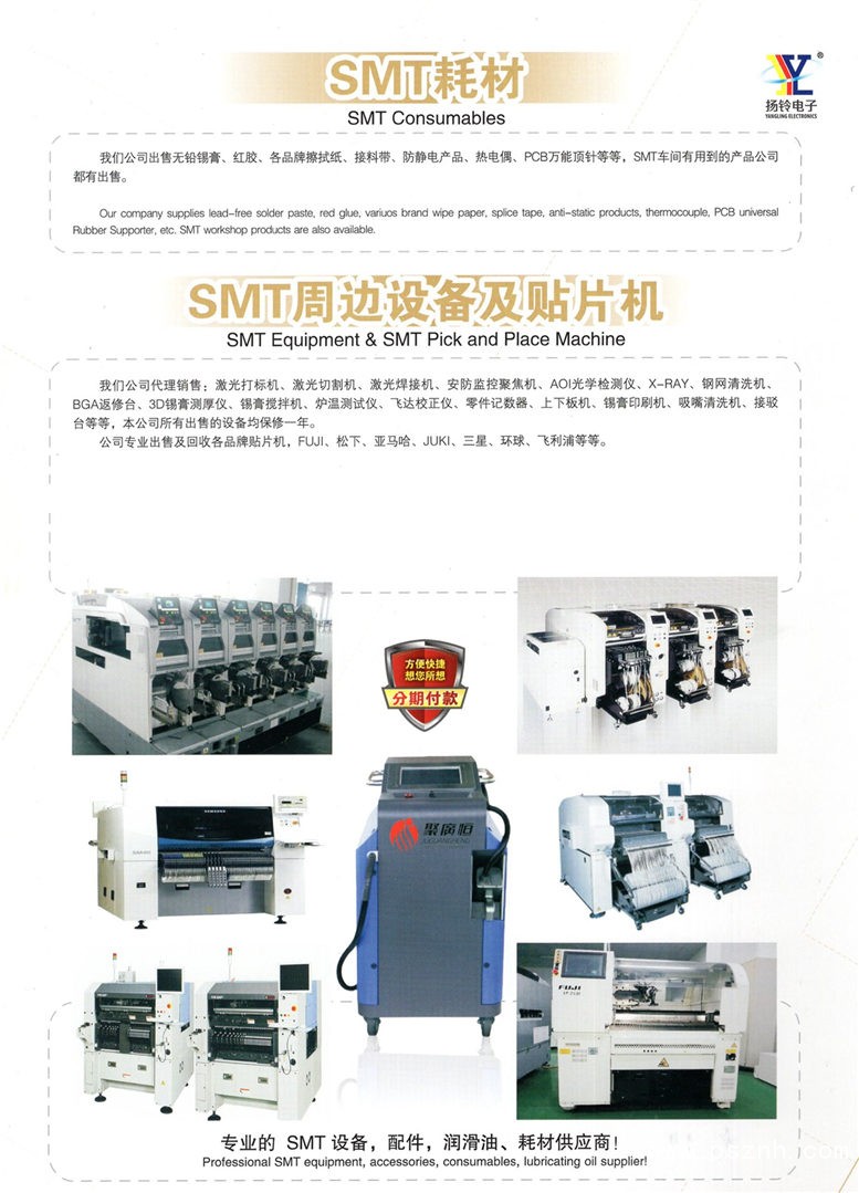 “東莞市揚鈴電子商貿(mào)有限公司”位于東莞有“中國鄉(xiāng)鎮(zhèn)之星”之稱的長安鎮(zhèn)。我們成立于2005年,一直從事二手貼片機買賣,整廠設備回收,貼片機吸嘴,飛達,配件,SMT周邊設備的研發(fā)和生產(chǎn)。并取得了太森潤滑油、捷客斯?jié)櫥汀⒊龉鉂櫥偷氖跈啻?;自公司成立以來,一直與一些知名優(yōu)秀供應商緊密合作,為OEM及EMS工廠提供先進的生產(chǎn)設備、零配件、耗材及潤滑油。