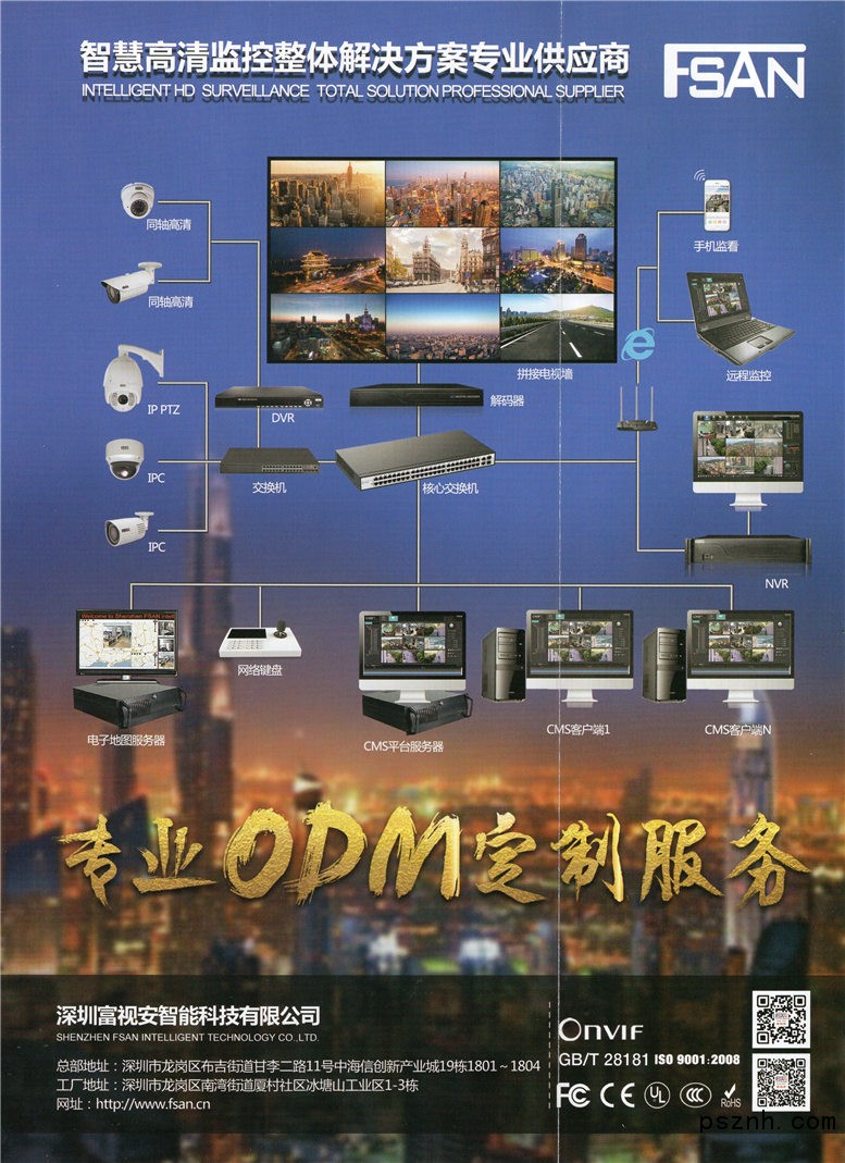 富視安總部位于深圳,在北京、杭州、成都、烏魯木齊設(shè)有四大區(qū)域服務(wù)中心,其服務(wù)網(wǎng)絡(luò)遍布全國二十幾個(gè)省區(qū),產(chǎn)品暢銷歐美等100多個(gè)國家和地區(qū),自2006年成立以來,連續(xù)6年取得30%以上的高速增長。富視安目前是公共安全協(xié)會(huì)副會(huì)長單位、深圳市高新技術(shù)企業(yè)、國家高新技術(shù)企業(yè),其產(chǎn)品榮膺2010年度中國安防十大新銳產(chǎn)品稱號(hào)。富視安通過了ISO9001質(zhì)量管理體系認(rèn)證,其產(chǎn)品通過了國際通行的CE、FCC嚴(yán)格認(rèn)證,RoHS歐盟綠色環(huán)保認(rèn)證,取得了公安部安防產(chǎn)品檢驗(yàn)中心頒發(fā)的檢驗(yàn)報(bào)告(MA認(rèn)證)。