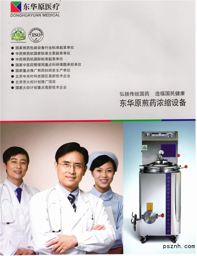 北京東華原醫(yī)療設(shè)備有限責(zé)任公司(以下簡稱“東華原”)成立于2000年,注冊資金2000萬元,坐落于北京市中關(guān)村科技園區(qū)昌平園,是國家高新技術(shù)企業(yè)、國家火炬計(jì)劃重點(diǎn)高新技術(shù)企業(yè)。東華原是中國煎藥設(shè)備的主流供應(yīng)商,擁有標(biāo)準(zhǔn)化的煎藥機(jī)生產(chǎn)、研發(fā)基地,公司自主研制的十功能自動煎藥機(jī)被國家科技部認(rèn)定為國家重點(diǎn)新產(chǎn)品。公司于2005年通過了國家ISO9001質(zhì)量體系認(rèn)證和ISO13485醫(yī)療器械質(zhì)量管理體系認(rèn)證,2007年通過德國萊茵檢測認(rèn)證、CE產(chǎn)品安全質(zhì)量認(rèn)證,產(chǎn)品質(zhì)量、安全和服務(wù)已達(dá)到歐盟標(biāo)準(zhǔn)。是煎藥機(jī)行業(yè)標(biāo)準(zhǔn)、國家標(biāo)準(zhǔn)的制訂單位。由東華原主導(dǎo)起草的國際標(biāo)準(zhǔn)《草藥煎煮設(shè)備》已于2015年11月正式發(fā)布,這是中醫(yī)診療設(shè)備領(lǐng)域的第二個國際標(biāo)準(zhǔn),也是國際標(biāo)準(zhǔn)化組織/中醫(yī)藥技術(shù)委員會(ISO/TC249)發(fā)布的第四個中醫(yī)藥國際標(biāo)準(zhǔn)。該標(biāo)準(zhǔn)的發(fā)布,為中藥煎藥包裝設(shè)備走向世界贏得了話語權(quán)。