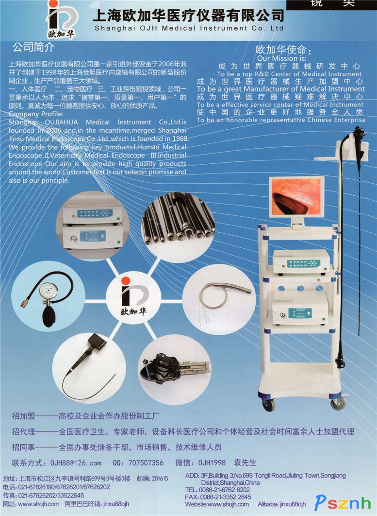 上海歐加華醫(yī)療儀器有限公司是一家引進外部資金于2006年兼并了上海金旭醫(yī)療內窺鏡有限公司的新型股份制企業(yè)。公司是生產醫(yī)用光纖內窺鏡系列,醫(yī)用電子內窺鏡系列,工業(yè)光纖內窺鏡系列,工業(yè)電子內窺鏡系列的專業(yè)廠家。 公司積極吸收國內外內窺鏡產品技術,積極采用新材料、新工藝,使產品在質量上得到飛速提高 ,提供優(yōu)良的產品,完善的售后服務是公司的宗旨, 信譽第一、質量第一、用戶第一”的莊重承諾是公司的一貫原則. 工業(yè)電子內窺鏡、工業(yè)纖維內窺鏡、工業(yè)直管內窺鏡主要適用于:電子電器工業(yè)、機械工業(yè)、航空、航天、汽車、石油化工、電力、發(fā)電機組、變壓器、鐵路、船舶、冶金、鍋爐、壓力容器、建筑工程、市政、鉆井、物探、考古、安防、搜救、刑偵、海關、軍隊等領域,同時還可用于拍攝管道、洞穴、海底珊瑚焦等。 工業(yè)內窺鏡產品性能特點:能夠進入到深度為1-100米的各種肉眼所觀察不到的內部進行真實、高效的觀察。將觀察到的圖像通過圖像處理器傳輸?shù)奖O(jiān)視器以便觀察,通過電腦對檢測部位進行編輯、制圖、打印報告單格式,向上級主管部門及時報告產品質量情況并保存于電腦內,方便于階段性檢查和新舊產品質量的對比。