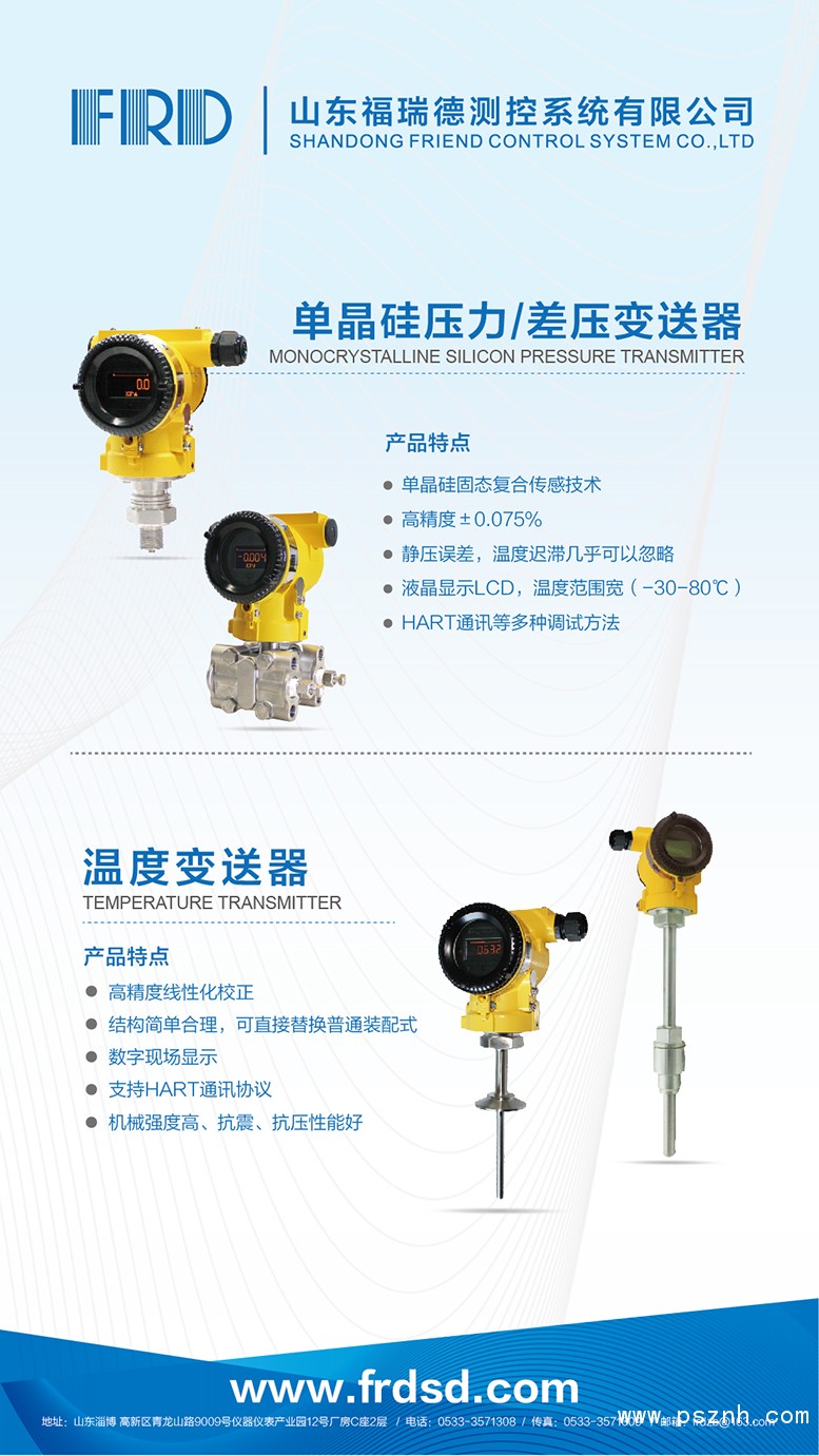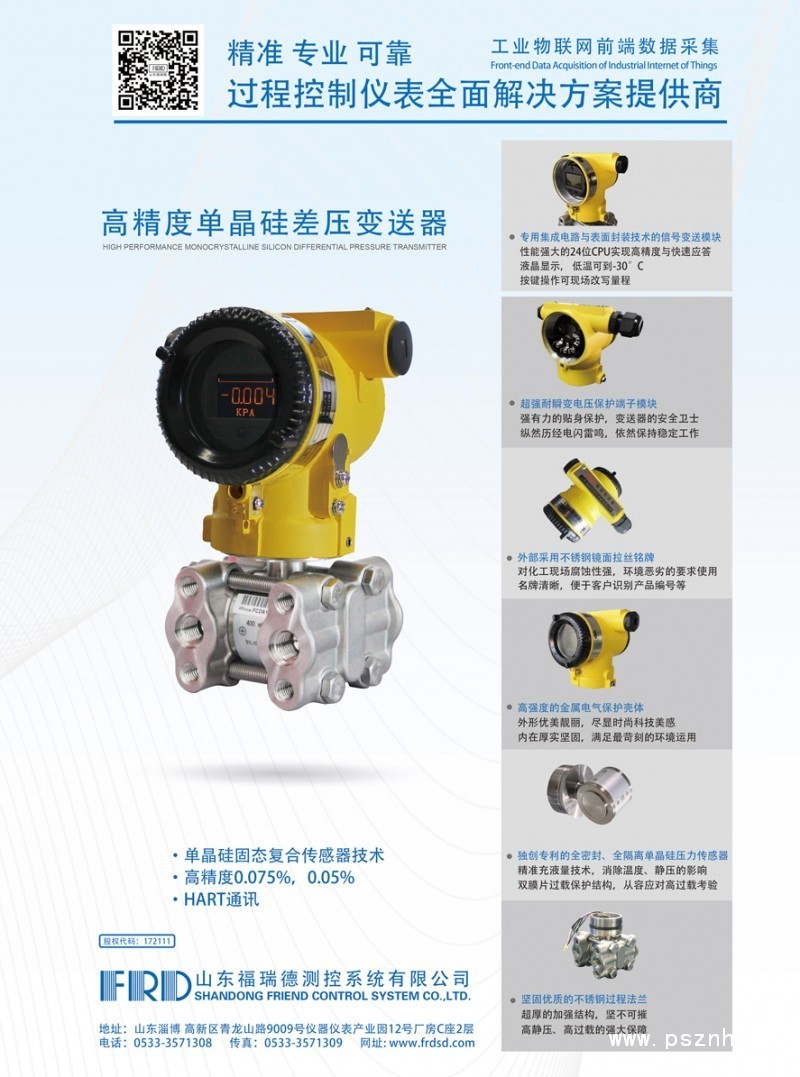 公司創(chuàng)建于2002年,擁有十多年壓力、差壓、溫度、流量等傳感器、變送器的設(shè)計(jì)、研發(fā)和生產(chǎn)制造經(jīng)驗(yàn),秉承技術(shù)創(chuàng)新和管理創(chuàng)新的精神,福瑞德潛心工藝技術(shù),以“準(zhǔn)確、專(zhuān)業(yè)、可靠”的生產(chǎn)理念,為顧客提供各種工業(yè)自動(dòng)化現(xiàn)場(chǎng)儀表與監(jiān)測(cè)解決方案。產(chǎn)品覆蓋壓力變送器、差壓變送器、溫度儀表、流量計(jì)、物聯(lián)網(wǎng)末端采集與無(wú)線(xiàn)傳輸裝置,是廣大用戶(hù)可信賴(lài)的傳感器、變送器及工業(yè)自動(dòng)化控制系統(tǒng)系統(tǒng)解決方案提供商。