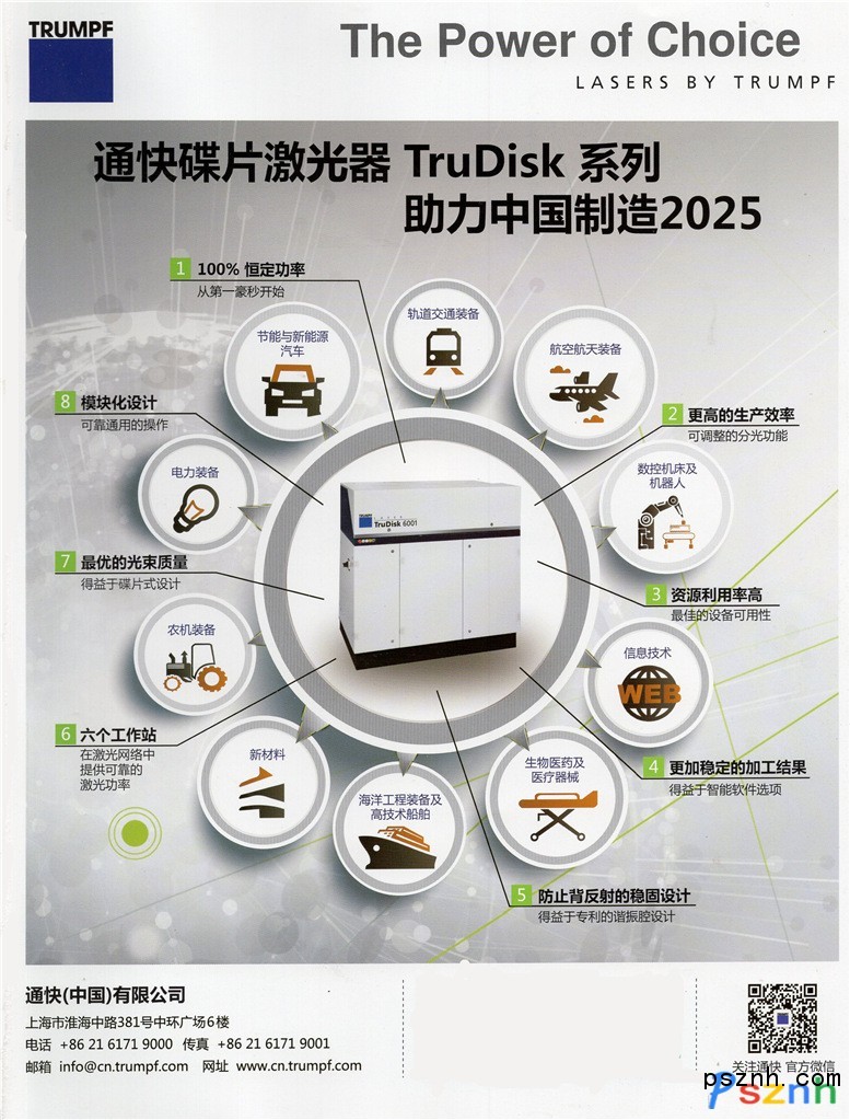 通快(中國)有限公司是通快集團(tuán)下屬的五十多個子公司之一,自2000年開始在中國的直接投資,先后在江蘇太倉與廣東東莞投資了四家生產(chǎn)化企業(yè),生產(chǎn)數(shù)控鈑金加工機(jī)床。通快集團(tuán)總部在德國迪琴根具有80多年的機(jī)床生產(chǎn)歷史,是全球制造技術(shù)領(lǐng)域的領(lǐng)導(dǎo)企業(yè)之一。從加工金屬薄板和材料的機(jī)床,到激光技術(shù)、電子領(lǐng)域,通快正以不斷的創(chuàng)新引導(dǎo)著技術(shù)發(fā)展趨勢。通快正在建立新的技術(shù)標(biāo)準(zhǔn),同時(shí)致力于開辟更新更多的產(chǎn)品給廣大用戶。
