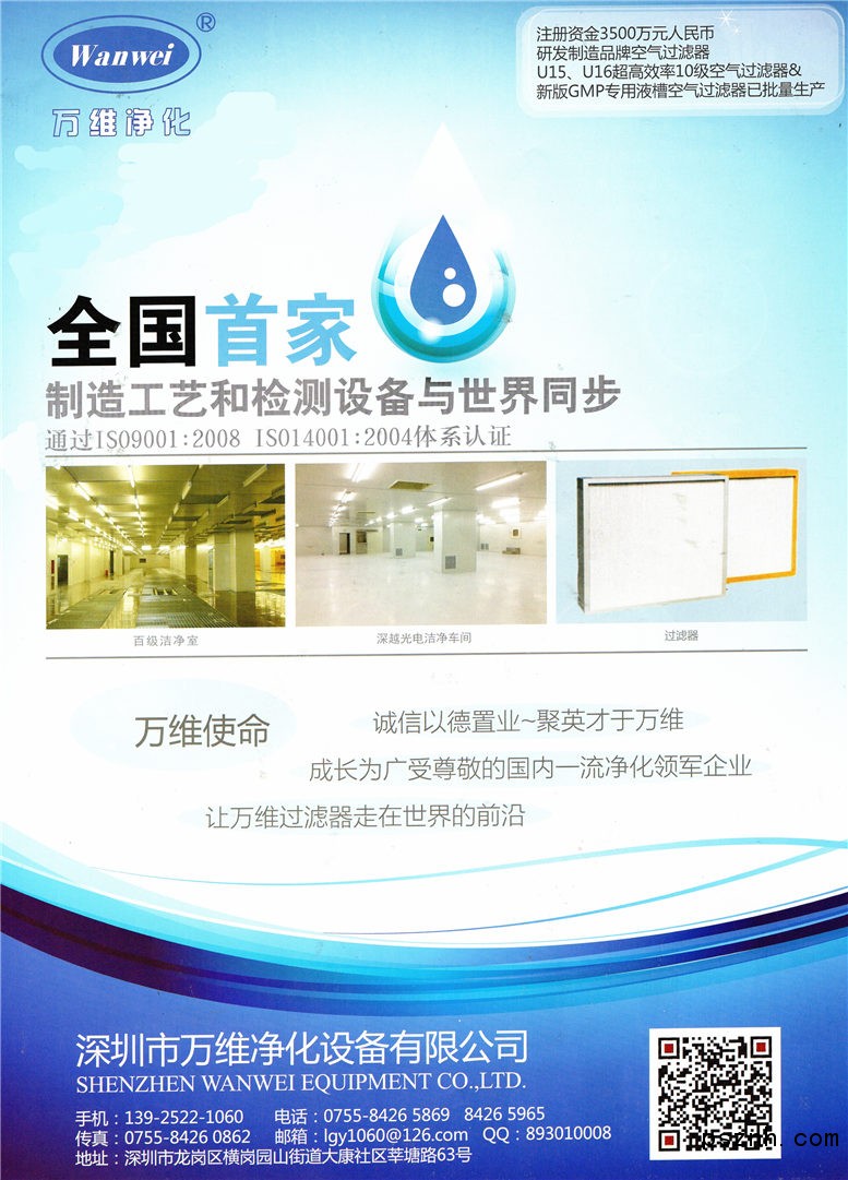 深圳市萬維凈化設(shè)備有限公司 高效過濾器 中效過濾器 初效過濾器