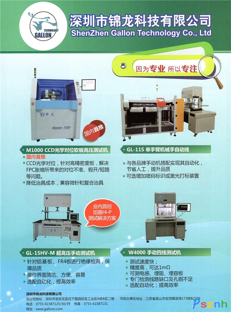 深圳市錦龍科技有限公司創(chuàng)立于2004年,是一家面向PCB測試的專業(yè)服務型公司。自從2006自主品牌的測試機研發(fā)成功,目前公司業(yè)務已經(jīng)拓展至測試機研發(fā)、生產(chǎn)、銷售,測試代工,測試治具設計、代工及壞板檢修,測試技術支持,輔料配件銷售一體的全面測試服務。擁有自主品牌的PCB/FPC測試機,治具專利,自動蓋章機,燒斷器等產(chǎn)品。