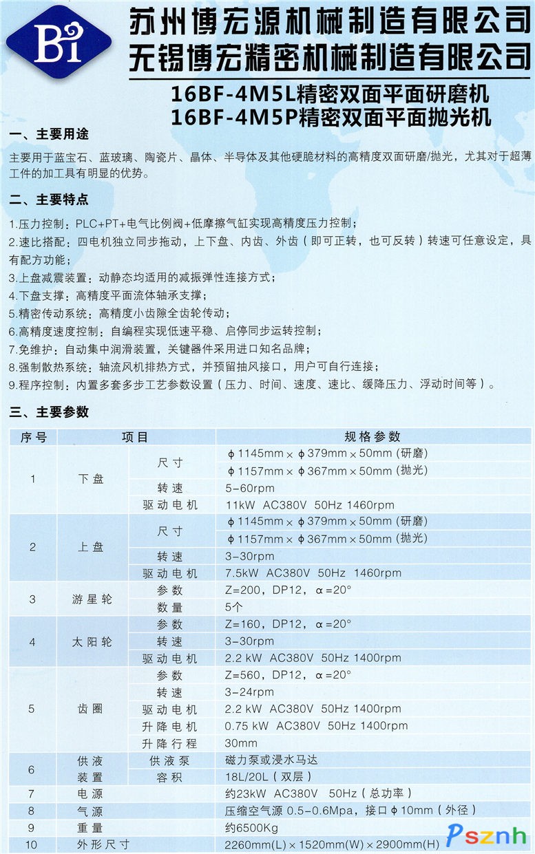 蘇州博宏源機械制造有限公司是專業(yè)研發(fā)及生產單雙面研磨、拋光設備的高科技企業(yè),公司總部設在經濟發(fā)達的長三角經濟圈的蘇州市渭塘鎮(zhèn)愛格豪路22號。在日本、無錫設有研發(fā)中心(設備的核心技術由日本研發(fā)中心提供),擁有種類齊全的機加設備近100臺套,檢測儀器、儀表50余臺套,廠房近萬平方米,員工200余人;在深圳、無錫、西安設有銷售服務網點及庫房。公司主要從事高精密的單、雙面研磨,拋光設備的研發(fā)、制造、銷售,自主研發(fā)的產品有:32B、28B、24B、22B、20B、18B、16B-5、16B-8、13.9B、13B、15B、16S、9B、6B、485、360等單、雙面研磨、拋光機、數控48工位CNC手機面板(玻璃、藍寶石)高精度外形加工設備及面板自動倒邊機。主要用于藍寶石、藍玻璃、手機面板、觸摸屏、光學光電子、液晶玻璃、半導體、各類晶體、金屬等硬脆材料的單、雙面高精度的研磨、拋光加工、產品集多項專利技術為一體:水冷、靜壓、溫控技術水平處于行業(yè)領先地位。