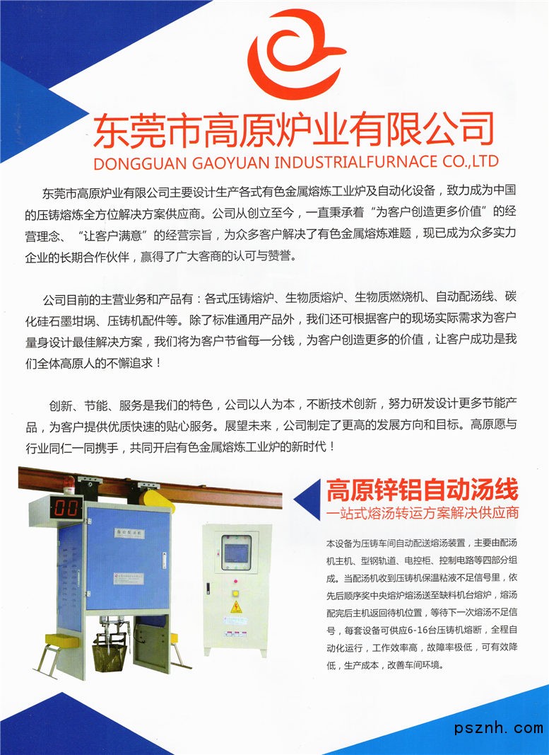 東莞市高原爐業(yè)有限公司_鋅鋁合金電爐_集中熔化爐_自動配湯線