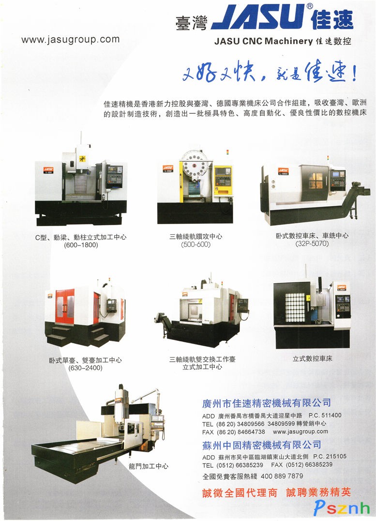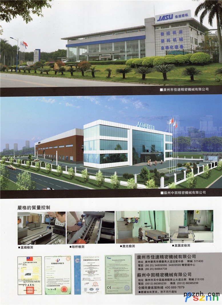 廣州市佳速精密機械有限公司地處廣州番禺,致力于佳速精機品牌產(chǎn)品的研發(fā)與制造,產(chǎn)品有數(shù)控機床、注拉吹一體機、機床功能部件及工業(yè)機器人。佳速公司于2012年斥巨資建立蘇州中固精密機械有限公司,是佳速精機發(fā)展史上又一重要里程碑,作為佳速公司的全資子公司,將對佳速精機拓展我國華東、華北市場,有著更為深遠的發(fā)展戰(zhàn)略意義。