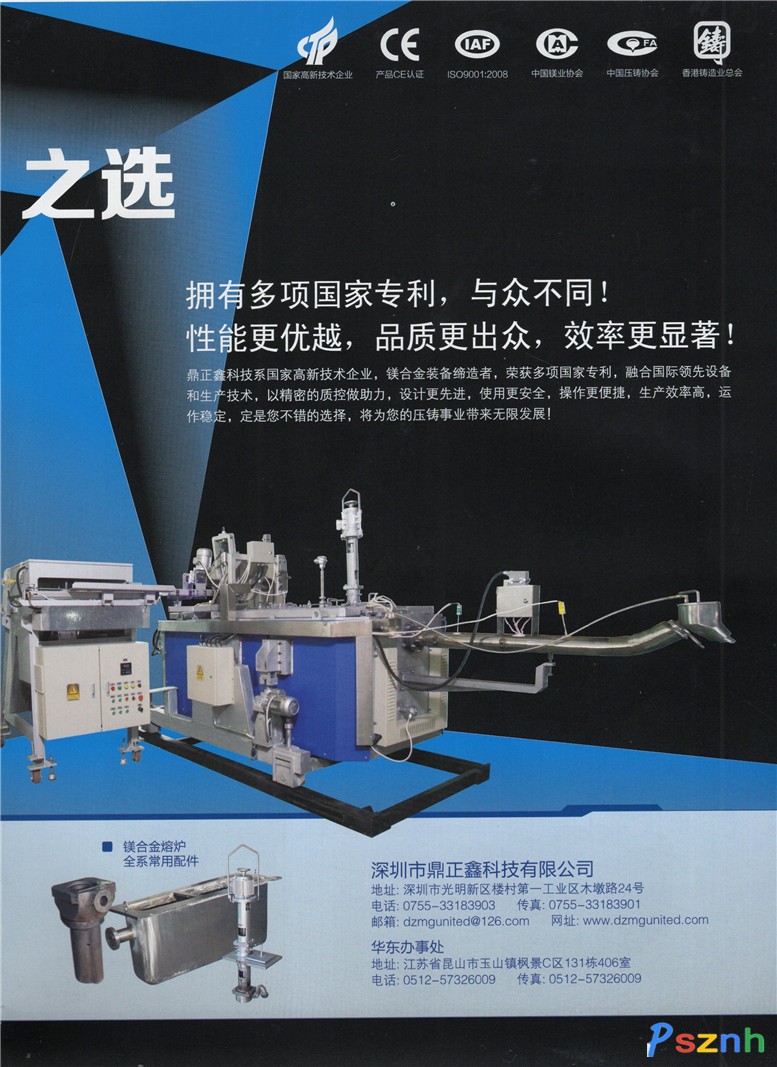 深圳市鼎正鑫科技有限公司座落于改革發(fā)展前沿的都市深圳,專業(yè)從事鎂合金熔爐、熔爐、料壺、坩堝、金屬鎂冶煉、鎂合金壓鑄設(shè)備耗材、鎂合金冶煉精煉設(shè)備及各類非標(biāo)鎂合金熔爐等設(shè)備研發(fā)、制造和銷售的科技型企業(yè)。是國(guó)家高新技術(shù)企業(yè)廣東省壓鑄協(xié)會(huì)理事單位、中國(guó)鑄造協(xié)會(huì)的常務(wù)理事單位、香港壓鑄協(xié)會(huì)理事單位。