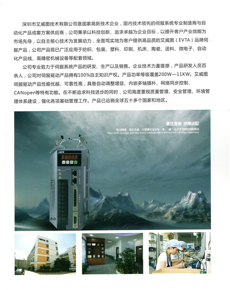 艾威圖技術(shù)有限公司專業(yè)致力于伺服系統(tǒng)產(chǎn)品的研發(fā)、生產(chǎn)、銷售,及自動(dòng)化配套產(chǎn)品的銷售。提供完善的培訓(xùn)計(jì)劃及高水準(zhǔn)的應(yīng)用支持,為客戶最大限度的發(fā)掘產(chǎn)品附加值。艾威圖擁有一流的生產(chǎn)設(shè)備與工藝檢測流程,嚴(yán)格執(zhí)行ISO9001質(zhì)量管理體系認(rèn)證,科學(xué)規(guī)范運(yùn)用質(zhì)量管理方式確保產(chǎn)品的高品質(zhì)出品。艾威圖始終貫徹‘至誠至精’、‘全心全意’的服務(wù)精神,通過持續(xù)不斷的進(jìn)取精神,為民族伺服行業(yè),工業(yè)自動(dòng)化進(jìn)程貢獻(xiàn)力量。