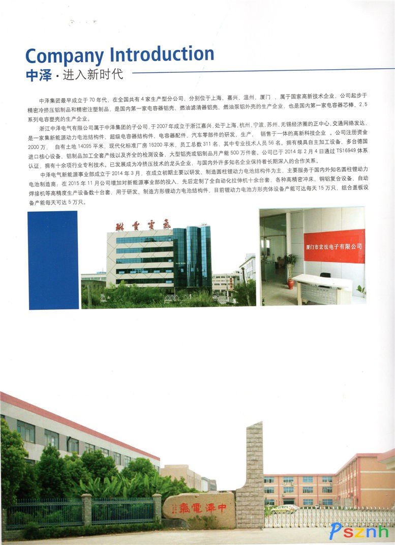 浙江中澤電氣有限公司企業(yè)集團(tuán)1987年成立,起步于精密電容器配件的制造,逐步拓展到高低壓電氣于通訊配件、汽車零配件的設(shè)計和制造。是中國大陸第一家電容器芯棒的生產(chǎn)企業(yè),第一家2.5系列薄膜電容器塑殼的自主配套企業(yè),是飛利浦、松下等電器集團(tuán)的二級供應(yīng)商,是法雷奧汽車零配件集團(tuán)的一級供應(yīng)商。浙江中澤電氣有限公司是集團(tuán)2007年在嘉興成立的分公司,占地20多畝,一期廠房面積已達(dá)12000平米。企業(yè)專注于塑料加工、金屬加工、組裝等零件加工工藝,主要生產(chǎn)汽車零配件、高低壓電氣設(shè)備,電子元器件,預(yù)計年生產(chǎn)產(chǎn)品200萬件套,年銷售1億,立足于長三角區(qū)域的制造業(yè)規(guī)模優(yōu)勢和物流優(yōu)勢,力求以高素質(zhì)人才、高水平管理、高質(zhì)量產(chǎn)品服務(wù)世界各地的新老客戶。