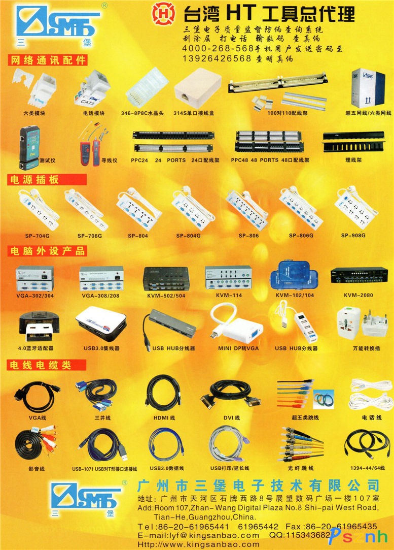 廣州市三堡電子技術有限公司,源于1995年,由臺灣三堡電子股分有限公司,投資從事國內產品銷售事業(yè)部,并由臺灣三堡電子股分有限公司在國內所設立的工廠提供產品。主要產品包括綜合布線產品、電腦外設產品、電話配件、電線電纜、有線電視產品,同時并代理臺灣HT品牌電子手工具系列,歷經(jīng)十余年的經(jīng)營與革新?,F(xiàn)在三堡電子連鎖式經(jīng)營方式已成功在全國各地發(fā)展,在全國各地擁有許多經(jīng)銷商,代理商及加盟店,同時隨時皆有新產品及新的進口代理,產品豐富。產品質量與品牌是三堡的核心價值,用戶安心是三堡的終極目標,與世界同步是創(chuàng)新的動力的