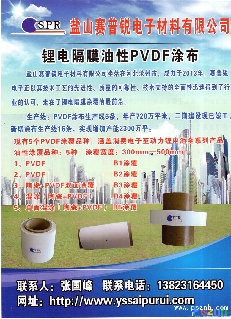 生產(chǎn)線:PVDF涂布生產(chǎn)線6條,月產(chǎn)60萬平米。二期實現(xiàn)增資2000萬元,實現(xiàn)增加產(chǎn)能2160萬平米,計劃2016年投產(chǎn),現(xiàn)有5個PVDF涂覆品種,涵蓋消費電子至動力鋰電池全系列產(chǎn)品,滿足卷繞及疊片電池的使用需求同時針對高能量密度體系,開發(fā)成功了陶瓷+PVDF油性涂層的專有體系;油性單面涂層。