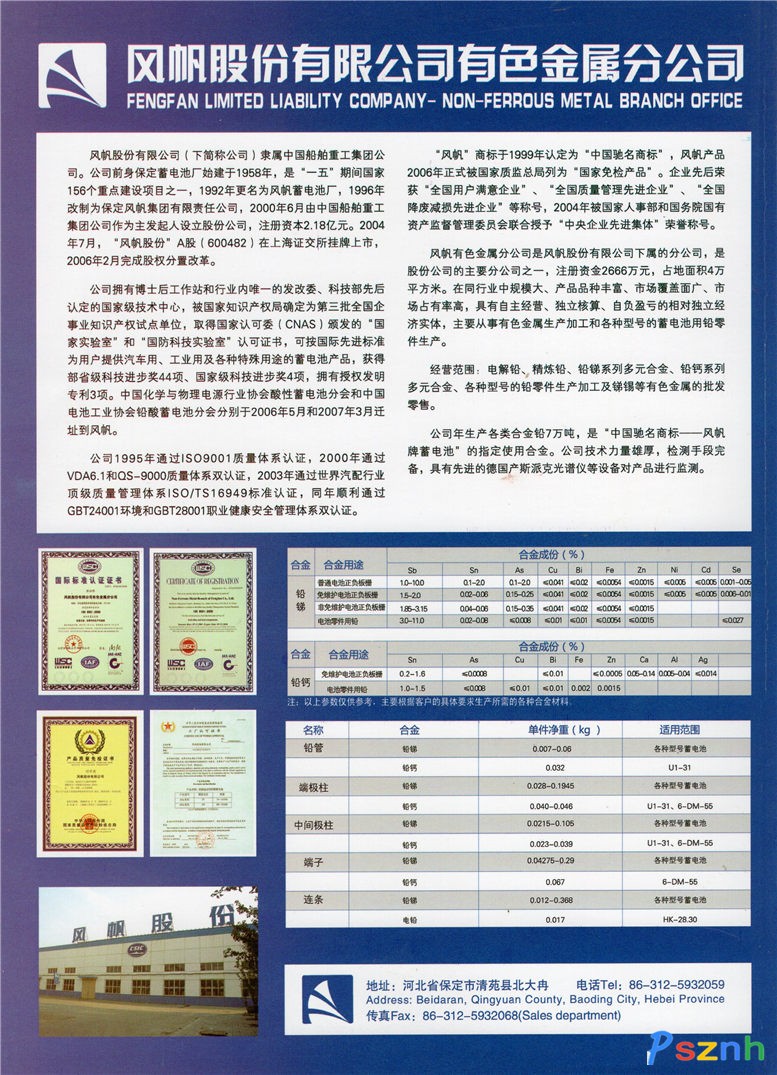 風帆股份有限公司有色金屬分公司_蓄電池零配件_電解鉛_精煉鉛_鉛銻系列多元合金 深圳電池展