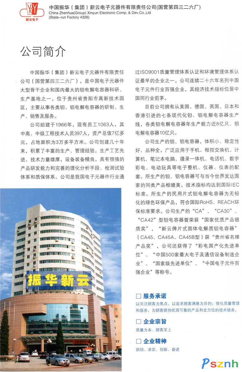 中國振華(集團(tuán))新云電子元器件有限責(zé)任公司(國營第四三二六廠) _非固體電解質(zhì)鉭電容器_脈沖變壓器_平面變壓器_片式固體電解質(zhì)鉭電容器_固體電解質(zhì)鉭電容器_有引線模壓固體電解質(zhì)鉭電容器_環(huán)氧樹脂包