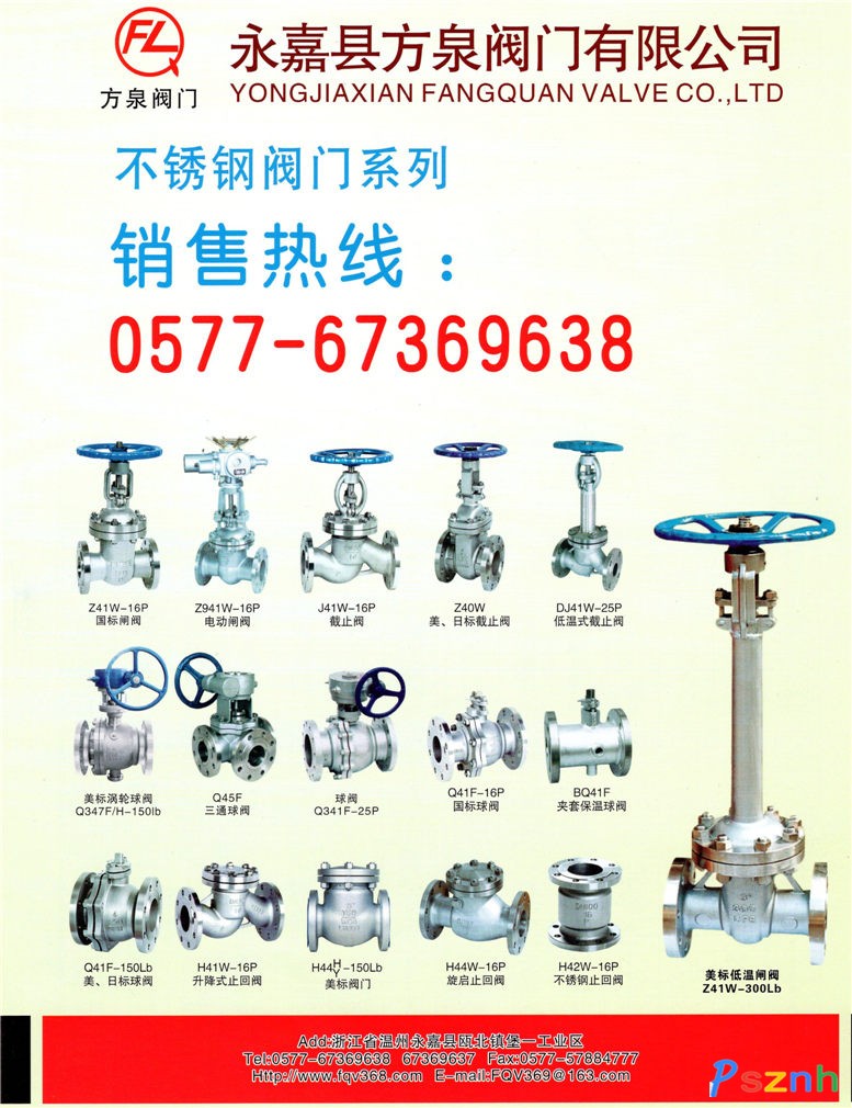 永嘉縣方泉閥門有限公司是以生產(chǎn)全焊接球閥、不銹鋼閥門系列為主導(dǎo)產(chǎn)品的研制、開發(fā)、生產(chǎn)和銷售的綜合性閥門企業(yè)。