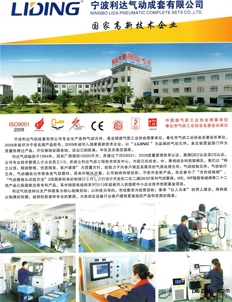 寧波利達氣動成套有限公司始創(chuàng)于1994年,是一家專業(yè)向客戶提供氣動執(zhí)行、方向控制、氣源處理及各類輔件服務和個性化解決方案的公司。先后被列入國家高新技術企業(yè)、國家中小企業(yè)技術創(chuàng)新基金、全國液氣密工業(yè)協(xié)會理事單位、浙江省AAA級守合同重信用單位。http://www.nblida.cn/uploads/fck/image/1(1)(1).jpg牌氣動元件榮獲寧波名牌、寧波知名商標,不僅暢銷全國各地,還出口到歐美、中東及東南亞國家。
