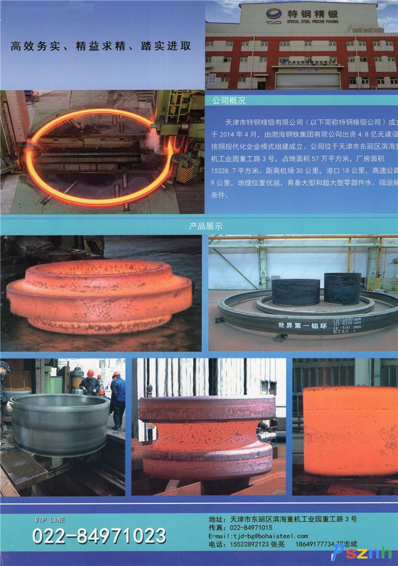 天津市特鋼精鍛有限公司(以下簡(jiǎn)稱(chēng)特鋼精鍛公司)成立于20144月,由渤海鋼鐵集團(tuán)有限公司出資4.8億元建設(shè),按照現(xiàn)代化企業(yè)模式組建成立,公司注冊(cè)資本1000萬(wàn)元。公司位于天津市東麗區(qū)濱海重機(jī)工業(yè)園重工路3號(hào),廠房面積15228.7平方米。地處環(huán)境優(yōu)良,具備大型和超大型零部件水、陸運(yùn)輸條件。 公司通過(guò)引進(jìn)國(guó)際最先進(jìn)全的,全自動(dòng)化碾環(huán)設(shè)備及技術(shù),并依托渤海鋼鐵集團(tuán)資源優(yōu)勢(shì),生產(chǎn)大型、高端、異型環(huán)鍛件產(chǎn)品,重點(diǎn)解決核電、軍工、石化、大重型工程機(jī)械、大型海上風(fēng)電等行業(yè)對(duì)大型高端環(huán)鍛件的需求問(wèn)題。