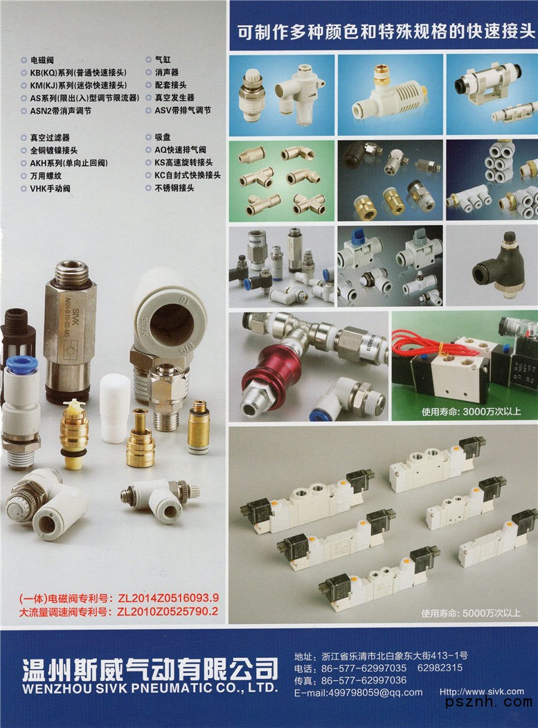 公司的主要產(chǎn)品有:方向控制閥、執(zhí)行元件 (氣缸)、空氣處理元件、真空設(shè)備、輔助氣動(dòng)元件。各系列產(chǎn)品規(guī)格齊全,質(zhì)量可靠,價(jià)格合理,是替代同類進(jìn)口產(chǎn)品的理想選擇。