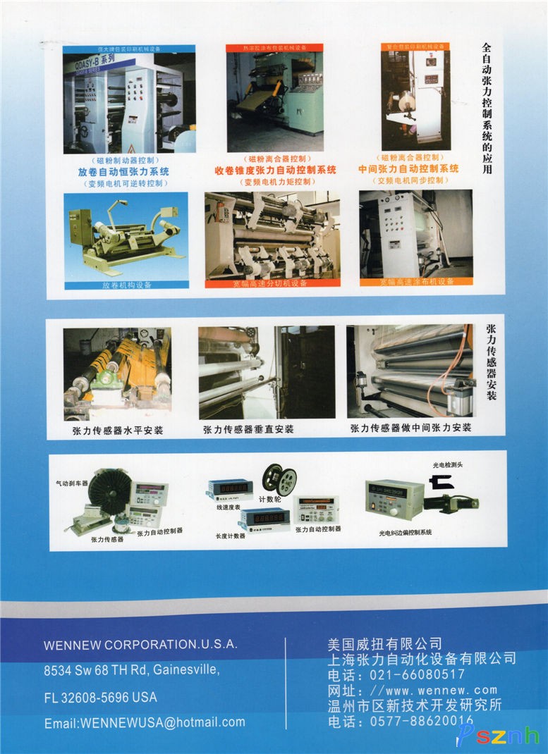 上海張力自動(dòng)化設(shè)備有限公司是美國WENNEW(威扭)公司在中國注冊(cè)的具有獨(dú)立法人資格的科工貿(mào)一體化企業(yè),多年來致力高科技含量的包裝、印刷設(shè)備的開發(fā),本企業(yè)擁有一批高級(jí)工程師、工程師等各類具有開拓精神的工程技術(shù)人員和經(jīng)濟(jì)管理隊(duì)伍,和具備豐富生產(chǎn)經(jīng)驗(yàn)技術(shù)的技術(shù)師、技工等高素質(zhì)的一線職工隊(duì)伍。