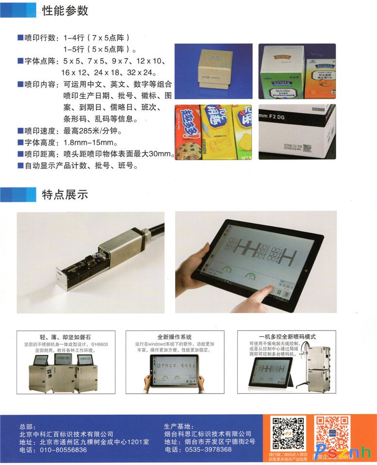 北京中科匯百標識技術(shù)有限公司是集標識設(shè)備及耗材研發(fā)、生產(chǎn)、銷售、服務(wù)于一體的高科技企業(yè)。擁有自已的研發(fā)中心和生產(chǎn)基地,具有年產(chǎn)噴碼機6000臺的能力,目前在全國設(shè)立了60余家直接管理的分支機構(gòu);廣泛的營銷服務(wù)網(wǎng)絡(luò)能夠確保其為客戶就近提供周到、可靠、全面的標識噴碼解決方案及售后服務(wù)。      中科匯百旗下的產(chǎn)品系列包括:小字符噴碼機、微字符噴碼機、熱發(fā)泡噴印系統(tǒng)、中科匯百·Leader大字符噴碼機、中科匯百·Leader高解析噴碼機和激光打標機等代表國內(nèi)外先進水平的標識產(chǎn)品。     北京中科匯百標識技術(shù)有限公司具有多年噴碼機生產(chǎn)的豐富經(jīng)驗,依靠雄厚的技術(shù)力量和高素質(zhì)的技術(shù)工人,以精湛的工藝、先進的生產(chǎn)設(shè)備、完善的檢測手段、健全的"8S"管理體系滿足國內(nèi)外用戶對噴碼標識的各種要求。公司秉承“求實、高效、創(chuàng)新、超越”的企業(yè)精神,近年來發(fā)展迅速,產(chǎn)品暢銷海外市場,在世界上十幾個國家擁有了經(jīng)銷服務(wù)網(wǎng)絡(luò),獲得海關(guān)A類企業(yè)證書;其產(chǎn)品在國內(nèi)市場也屢屢中標,成為客戶心目中信得過的好產(chǎn)品,在某些行業(yè)已榮獲政府采購指定品牌的聲譽,中科匯百將不斷進取,捍衛(wèi)其民族品牌噴碼機生產(chǎn)企業(yè)領(lǐng)軍者的地位。