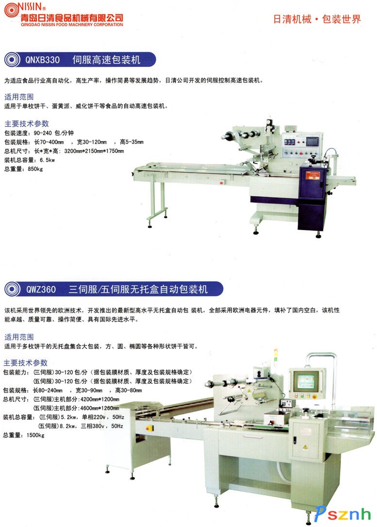 青島日清食品機械有限公司_臥式包裝機_無托盒餅干自動包裝機_餅干夾心機_立式包裝機_屋頂型紙盒灌裝機_裝盒機_自動供料機