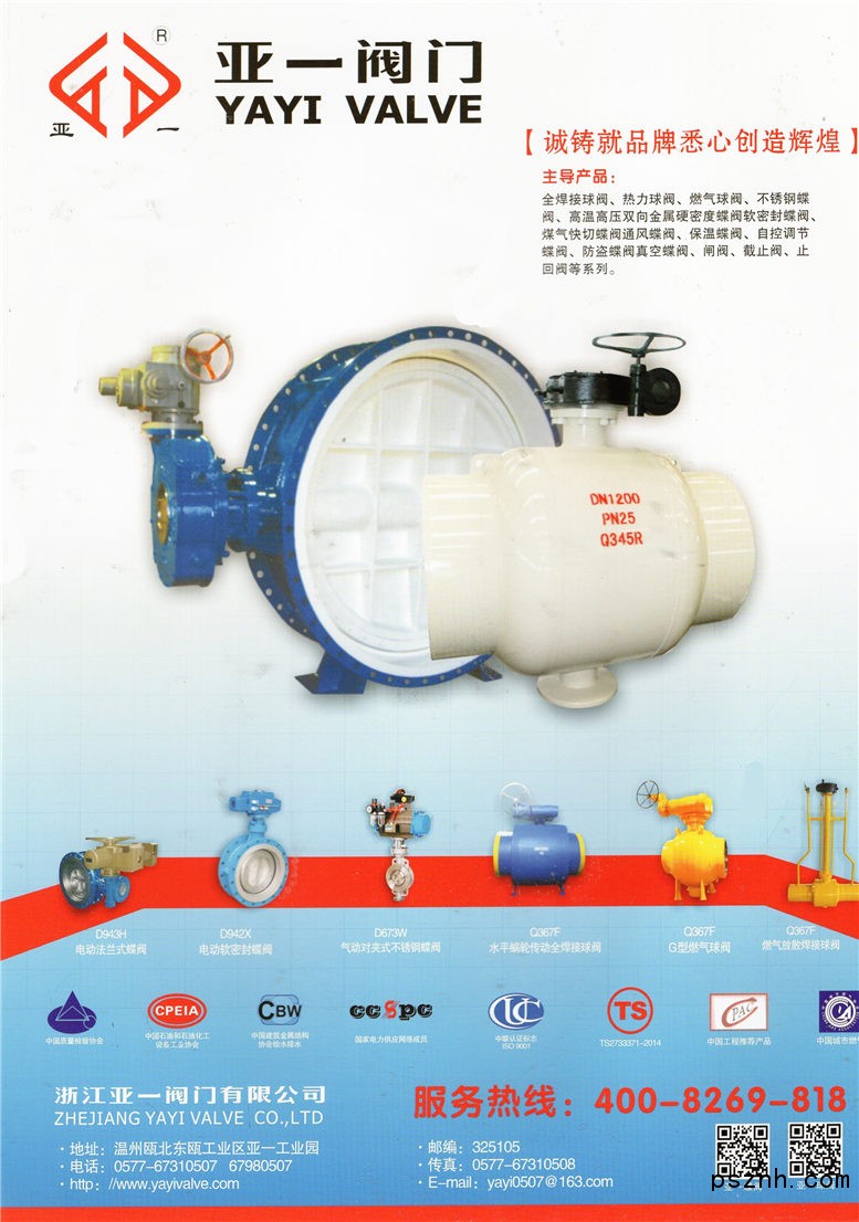 浙江亞一閥門(mén)有限公司是一家集設(shè)計(jì)、生產(chǎn)、銷(xiāo)售為一體的專(zhuān)業(yè)閥門(mén)制造商。公司主要生產(chǎn)蝶閥、閘閥、截止閥、止回閥、法蘭、電氣動(dòng)裝置、蝸輪等系列產(chǎn)品,所有產(chǎn)品均按GBT、API、國(guó)內(nèi)國(guó)際先進(jìn)標(biāo)準(zhǔn)設(shè)計(jì)、制造,廣泛用于建筑、市政、給排水、冶金、電站、食品、醫(yī)藥、暖通、消防、燃?xì)獾榷喾N行業(yè)。公司擁有多種特大型制造設(shè)備,高級(jí)工程師集專(zhuān)業(yè)熟練技工數(shù)十名,設(shè)備先進(jìn),人才濟(jì)濟(jì),確保了產(chǎn)品的完美實(shí)現(xiàn),產(chǎn)品遠(yuǎn)銷(xiāo)歐美、中東及東南亞等各國(guó)地區(qū)。以可靠的質(zhì)量和合理的價(jià)格深受廣大的國(guó)內(nèi)外客戶(hù)的好評(píng)和信賴(lài)。公司已通過(guò)ISO9001國(guó)際質(zhì)量體系認(rèn)證和ts壓力管道安全認(rèn)證。 公司不斷引進(jìn)國(guó)際管理經(jīng)驗(yàn),不斷進(jìn)行科技創(chuàng)新,我們將繼續(xù)以新的產(chǎn)品、卓越的品質(zhì)來(lái)回報(bào)廣大客戶(hù),以“沒(méi)有最好,只有更好”的宗旨,為您提供優(yōu)良的產(chǎn)品和完善的售前、售后服務(wù)。誠(chéng)請(qǐng)國(guó)內(nèi)外客商,各界用戶(hù)前來(lái)考察及洽談貿(mào)易。