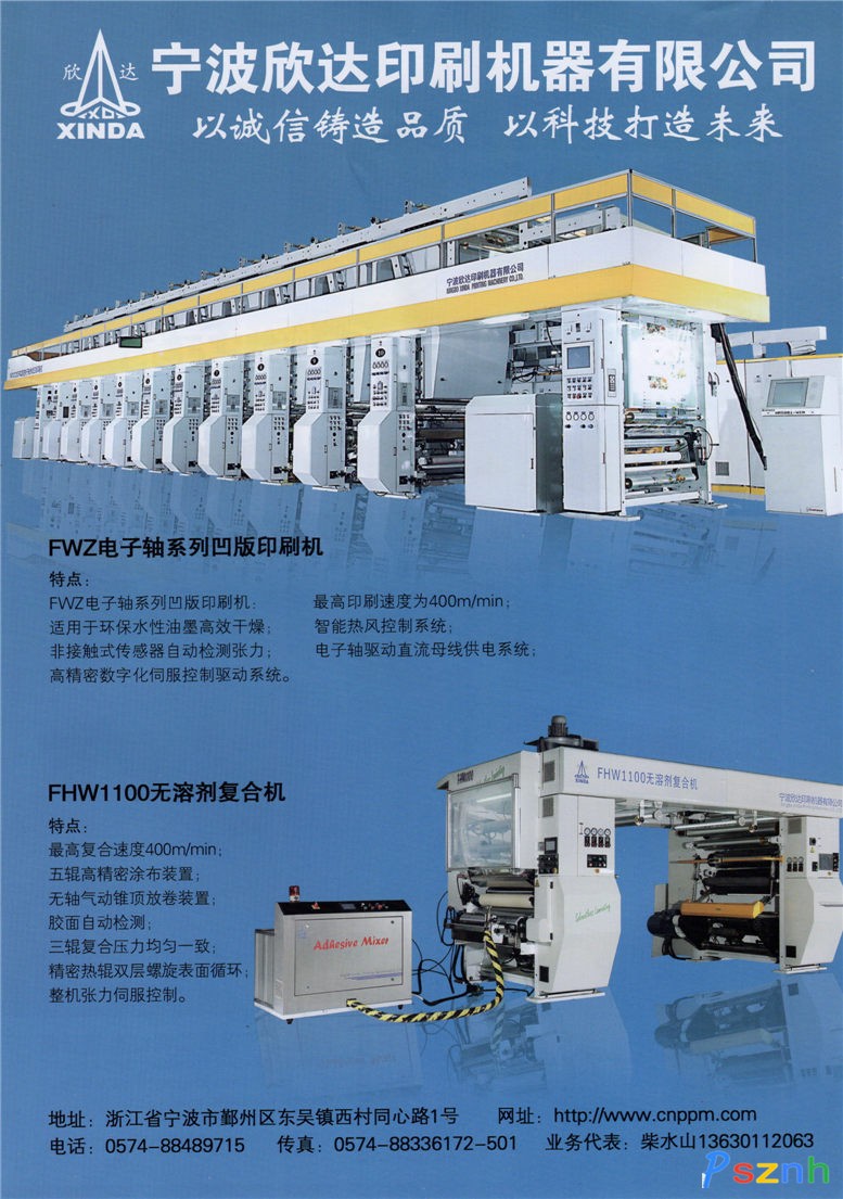 寧波欣達印刷機器有限公司位于美麗而充滿活力的濱海城市寧波,屬于寧波欣達集團(有限)公司的全資公司,以先進的技術(shù)團隊和國際一流的精密制造裝備和工藝為依托,是專業(yè)研發(fā)和制造高端組合式凹版印刷機與涂布復(fù)合設(shè)備的國家高新技術(shù)企業(yè)。 公司具有ISO9001質(zhì)量管理體系與ISO14001環(huán)境管理體系資質(zhì),2015年通過知識產(chǎn)權(quán)體系認證。先后榮獲“重點推廣優(yōu)秀企業(yè)”、“用戶滿意(凹印)品牌”等多項榮譽,自主開發(fā)的高速電子軸凹版印刷機榮獲“國家重點新產(chǎn)品”、“浙江省科技進步(二等)獎”和“浙江省產(chǎn)品設(shè)計大獎賽金獎”,“高精密涂布設(shè)備關(guān)鍵技術(shù)的研究與產(chǎn)業(yè)化”列入國家十二五科技支撐計劃專題項目并通過圓滿驗收,2015年成功開發(fā)和生產(chǎn)的600m/min電子軸傳動涂布印刷生產(chǎn)線為國內(nèi)首創(chuàng)并達到國際先進水平。 公司擁有數(shù)十名從事技術(shù)研發(fā)、產(chǎn)品設(shè)計和工藝技術(shù)的專業(yè)人才隊伍,持續(xù)地進行核心技術(shù)經(jīng)驗的傳承和不斷創(chuàng)新,持之以恒地研究和集成應(yīng)用環(huán)保與節(jié)能新技術(shù),在凹版印刷和涂布復(fù)合設(shè)備的技術(shù)領(lǐng)域取得發(fā)明及實用新型專利近百項;公司負責和參與起草《卷筒材料凹版印刷機》、《卷筒料復(fù)合機》、《卷筒料凹版印刷機能耗測試方法》等十幾項重要的國家和行業(yè)標準,榮獲“全國印刷機械標準化技術(shù)委員會先進單位”。 從德國、美國、日本和意大利進口的幾十臺加工中心和精密檢測設(shè)備,用于產(chǎn)品主關(guān)零件的制造生產(chǎn),加工精度和質(zhì)量水平達到國際一流的水準,使產(chǎn)品的質(zhì)量與性能品質(zhì)得到可靠保證。 寧波欣達堅持“誠信為本、創(chuàng)新為魂,打造百年欣達”的企業(yè)發(fā)展理念,竭盡全力為客戶提供貼心的服務(wù)和有力的技術(shù)支持,把為用戶創(chuàng)造效益最大化為己任,追求合作與共贏。