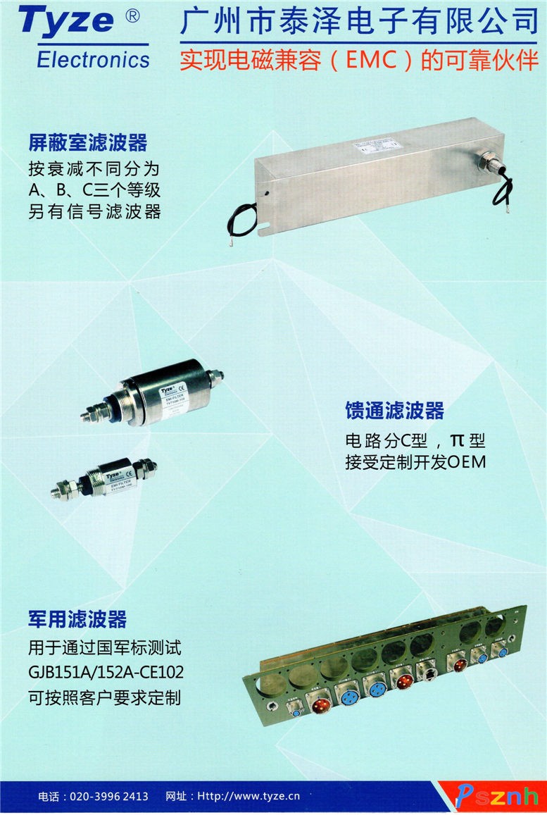 廣州市泰澤電子有限公司_單相交流濾波器_三相交流濾波器_IEC插座濾波器_PCB板專用濾波器_變頻伺服專用濾波器_ 直流濾波器_屏蔽室專用濾波器_饋通濾波器