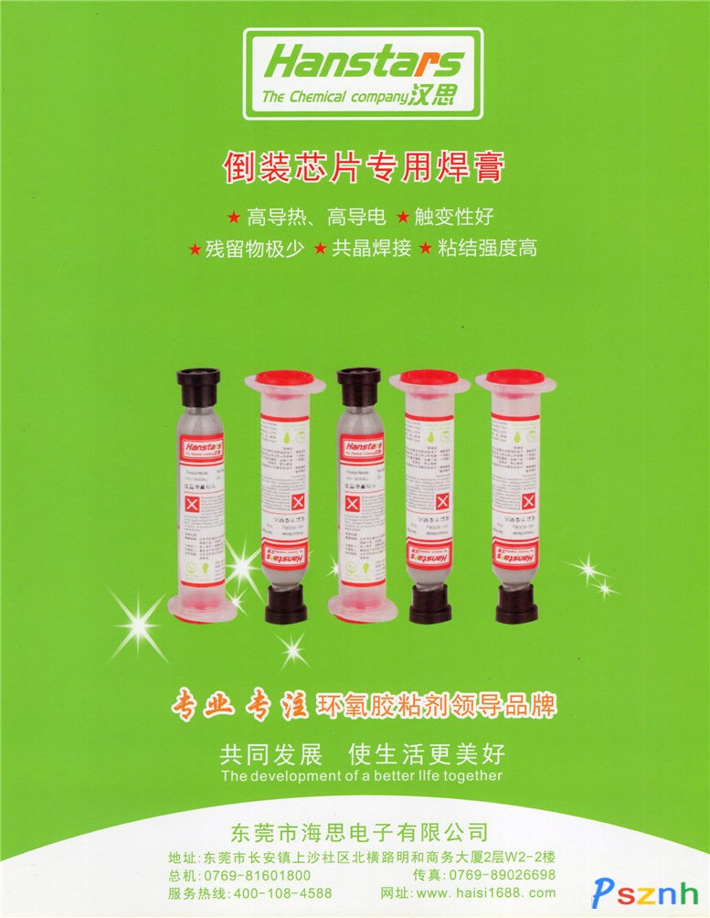 東莞市海思電子有限公司從美國、新加坡、日本引進了專業(yè)技術(shù)之后持續(xù)發(fā)展,工廠設(shè)在美麗的松山湖科技產(chǎn)業(yè)園和美麗的海濱城市—山東煙臺。同時正積極籌備各分公司、面向全國開展自己的專業(yè)服務(wù)。公司專業(yè)研發(fā)、生產(chǎn)、銷售SMT貼片紅膠、焊錫膏及電子工業(yè)膠粘劑。旗下品牌HANSTARS漢思也逐漸備受行業(yè)頂尖客戶的青睞。