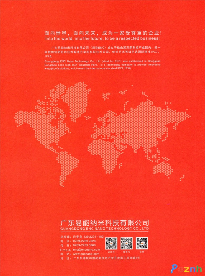 公司主營(yíng)業(yè)務(wù)涉及真空鍍膜設(shè)備、納米防水原料及創(chuàng)新防水技術(shù)的研發(fā)與應(yīng)用,ENC自主研發(fā)制造的真空鍍膜設(shè)備具有優(yōu)異的性能。ENC納米原料(歐盟RoHS標(biāo)準(zhǔn)、通過(guò)中國(guó)軍標(biāo)準(zhǔn)GJB150-2009、美軍標(biāo)MIL-46058C標(biāo)準(zhǔn)、美國(guó)NSF認(rèn)證、ISO-10993生物試驗(yàn)要求)在真空鍍膜設(shè)備經(jīng)過(guò)一系列物化反應(yīng)后能在任何物體表面“生長(zhǎng)”了一層厚度均勻、致密無(wú)針孔、透明無(wú)應(yīng)力的納米涂層, 它具有優(yōu)異的電學(xué)性能、機(jī)械性能和化學(xué)性能。同時(shí),不會(huì)引起產(chǎn)品自身功能,外觀以及微分子結(jié)構(gòu)等特性的變化