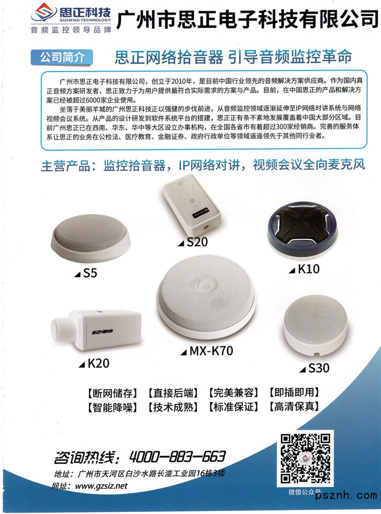 目前公司自主研發(fā)、生產(chǎn)的思正SIZ系列拾音器、監(jiān)聽頭、移動信號阻斷器、屏蔽器、安防HBM監(jiān)控攝像機是一款