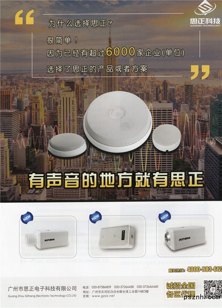 廣州市思正電子科技有限公司是一家集研發(fā)、生產(chǎn)、銷售、服務于一體的專業(yè)音頻和視頻制造商及工程設計.施工為一體的高科技企業(yè)。公司座落在美麗的羊城廣州,總部位于國家重點扶持的科研基地—國家軟件(廣州)產(chǎn)業(yè)基地。 思正科技堅持致力于音頻領域的領跑者,具有自主產(chǎn)權產(chǎn)品的開發(fā)、生產(chǎn)和市場開拓,并以精湛的技術、 良好的信譽以及完善的售后服務,得到用戶的信賴。 現(xiàn)公司員工100多人,85%具有大學以上文化程度,公司設有市場部、客服部、研發(fā)部、技術部 、人力資源部及獨立的生產(chǎn)車間等二級部門。