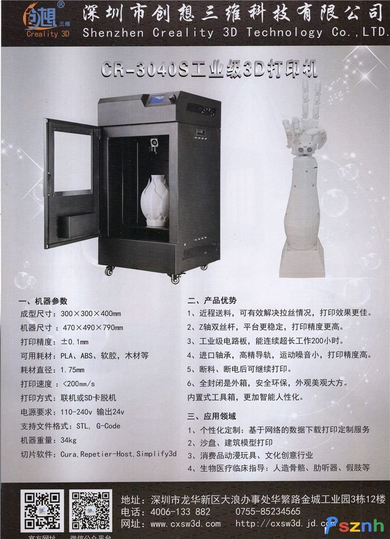 深圳市創(chuàng)想三維科技有限公司成立于2014年,是中國率先進(jìn)入3D打印行業(yè)的研發(fā)制造商, 致力于建設(shè)全方面的3D打印解決方案,業(yè)務(wù)領(lǐng)域以3D打印機(jī)的研發(fā)、制造、銷售為主,延伸到3D打印配件、3D打印耗材、3D教育課程體系、3D打印打印服務(wù)等。目前已成為中國3D打印行業(yè)銷量領(lǐng)先的高新技術(shù)企業(yè),研發(fā)實(shí)力、生產(chǎn)及品質(zhì)保證、服務(wù)保障 等多方面均處于業(yè)界領(lǐng)先水平。  “品質(zhì)保證”是‘創(chuàng)想人’驕傲的口碑,讓我們的客戶遍及全球  創(chuàng)想三維投入大量資金建立了大型標(biāo)準(zhǔn)的現(xiàn)代化生產(chǎn)線,年產(chǎn)能達(dá)6萬臺(tái)。作為從事先進(jìn)裝備生產(chǎn)的高科技制造型企業(yè),公司具備雄厚的科研基礎(chǔ)和研發(fā)實(shí)力,對(duì)全系列產(chǎn)品及其工程化開發(fā)流程擁有自主的知識(shí)產(chǎn)權(quán),擁有自主知識(shí)產(chǎn)權(quán)的技術(shù)與發(fā)明專利數(shù)十項(xiàng),產(chǎn)品通過CE、FCC、ROHS等多項(xiàng)國際質(zhì)量及環(huán)保認(rèn)證,并遠(yuǎn)銷歐洲、美國、澳大利亞、俄羅斯、英國、德國、新加坡、埃及、印度等三十多個(gè)國家和地區(qū)。在中國臺(tái)灣、香港、上海、北京、四川、湖北、江蘇、山東等十六個(gè)省及地區(qū)有授權(quán)代理商,創(chuàng)想三維CR-7 mini 3D打印機(jī)在知名國外眾籌Kickstarter成功眾籌20萬美元,連續(xù) 保持銷量、口碑領(lǐng)先,獲海內(nèi)外客戶的高度認(rèn)可。