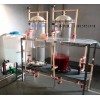 我國目前發(fā)電機組大部分采用水冷方式。內(nèi)冷水作為高壓電場中的冷卻介質(zhì),水質(zhì)的合格于否直接引起發(fā)電機導(dǎo)線的腐蝕和腐蝕產(chǎn)物的沉定,影響發(fā)電機組正常運行。隨著機組不斷增大,對冷卻水水質(zhì)要求也越來越高,不允許樹脂中含氯離子和硫酸根離子等。在線氫電導(dǎo)表用于火力發(fā)電機廠化學(xué)監(jiān)督的關(guān)鍵儀表,用于監(jiān)督給水、蒸汽、凝汽器等關(guān)鍵監(jiān)督部位的水汽品質(zhì)。影響在線氫電導(dǎo)表測量準(zhǔn)確性的一個關(guān)鍵因素是陽樹脂的再生度問題,而影響陽樹脂再生度的決定性因素是樹脂的再生方式。現(xiàn)在電力企業(yè)、化工企業(yè)幾乎都是采用傳統(tǒng)的體外靜態(tài)浸泡再生法。其不足在于樹脂再生度偏低(體外靜態(tài)再生度為50%左右),容易使氫電導(dǎo)率測量結(jié)果偏低,致使水汽品質(zhì)出現(xiàn)異常時不易即時發(fā)現(xiàn)。偏低的再生度造成氫電導(dǎo)率測量結(jié)果偏低,水汽品質(zhì)監(jiān)控數(shù)據(jù)失真。另外樹脂不易被水徹底沖洗干凈,也影響了氫電導(dǎo)率測量結(jié)果。靜態(tài)再生會使大多數(shù)在線氫導(dǎo)表的氫交換柱附加誤差偏低至-10%以下,高的誤差值達(dá)到-50%。體外靜態(tài)再生通常每臺機組的樹脂運行時間在1個月左右,交換處理能力就開始下降,就需更換新樹脂。這不僅造成成本增加,且污染環(huán)境。而我泰州華源實驗設(shè)備有限公司生產(chǎn)的THYJ型內(nèi)冷水混合樹脂分離再生裝置和THYJ型氫電導(dǎo)樹脂再生裝置操作方便靈活,能高效分離和再生清洗樹脂,使樹脂能重復(fù)使用。其正常配制為:加藥系統(tǒng)、樹脂自動導(dǎo)入(導(dǎo)出)系統(tǒng)、再生清洗系統(tǒng)、廢液收集系統(tǒng)、取樣系統(tǒng)、排污系統(tǒng)。
