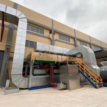利用特制的高能高臭氧UV紫外線光束照射廢氣,裂解工業(yè)廢氣如:氨、胺、氫、甲硫氫、甲硫醇、甲硫醚、乙酸丁酯、乙酸乙酯、二甲二硫、二硫化碳和苯乙烯、VOC類、苯、甲苯、二甲苯的分子鏈結(jié)構(gòu),使有機(jī)或無機(jī)高分子惡臭化合物分子鏈,在高能紫外線光束照射下,降解轉(zhuǎn)變成低分子化合物,如CO2、H2O等。利用高能高臭氧UV紫外線光束分解空氣中的氧分子產(chǎn)生游離氧,即活性氧,因游離氧所攜正負(fù)電子不平衡所以需與氧分子結(jié)合,進(jìn)而產(chǎn)生臭氧。 UV+O2→O-+O*(活性氧)O+O2→O3(臭氧),眾所周知臭氧對有機(jī)物具有極強(qiáng)的氧化作用,對工業(yè)廢氣及其它刺激性異味有立竿見影的清除效果。工業(yè)廢氣利用排風(fēng)設(shè)備輸入到本凈化設(shè)備后,凈化設(shè)備運(yùn)用高能UV紫外線光束及臭氧對工業(yè)廢氣進(jìn)行協(xié)同分解氧化反應(yīng),使工業(yè)廢氣降解轉(zhuǎn)化成低分子化合物、水和二氧化碳,再通過排風(fēng)管道排出室外。利用高能UV光束裂解工業(yè)廢氣中細(xì)菌的分子鍵,破壞細(xì)菌的核酸(DNA),再通過臭氧進(jìn)行氧化反應(yīng),徹底達(dá)到凈化及殺滅細(xì)菌的目的。從凈化空氣效率考慮,我們選擇了-C波段紫外線和臭氧結(jié)合電暈電流較高化裝置,采用脈沖電暈吸附技術(shù)相結(jié)合的原理對有害氣體進(jìn)行消除,其中-C波段紫外線主要用來去除氫、氨、苯、甲苯、二甲苯、甲醛、乙酸乙酯、乙烷、酮、尿烷、樹脂等氣體,使有機(jī)物轉(zhuǎn)變?yōu)闊o機(jī)物。